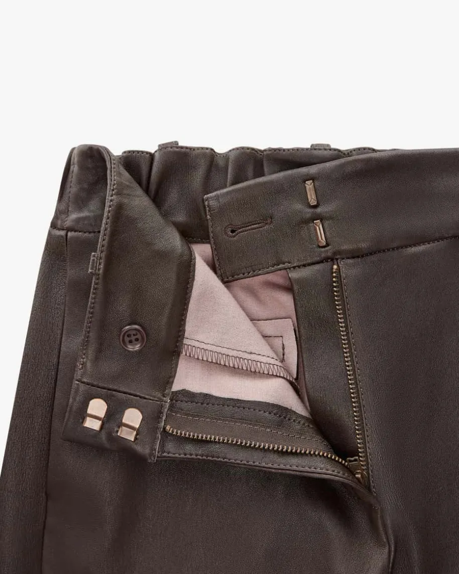 Lucia Lederhose für Damen von Arma in Dunkelbraun. Das Label ist ein Synonym fürexquisite und zeitlose Lederbekleidung. Auch dieses ausgestellte Modellpräsentiert sich mit glatter, elastischer Nappaleder-Verarbeitung, die für einenedlen Look sorgt, während klassische Details den Look gekonnt abrunden.