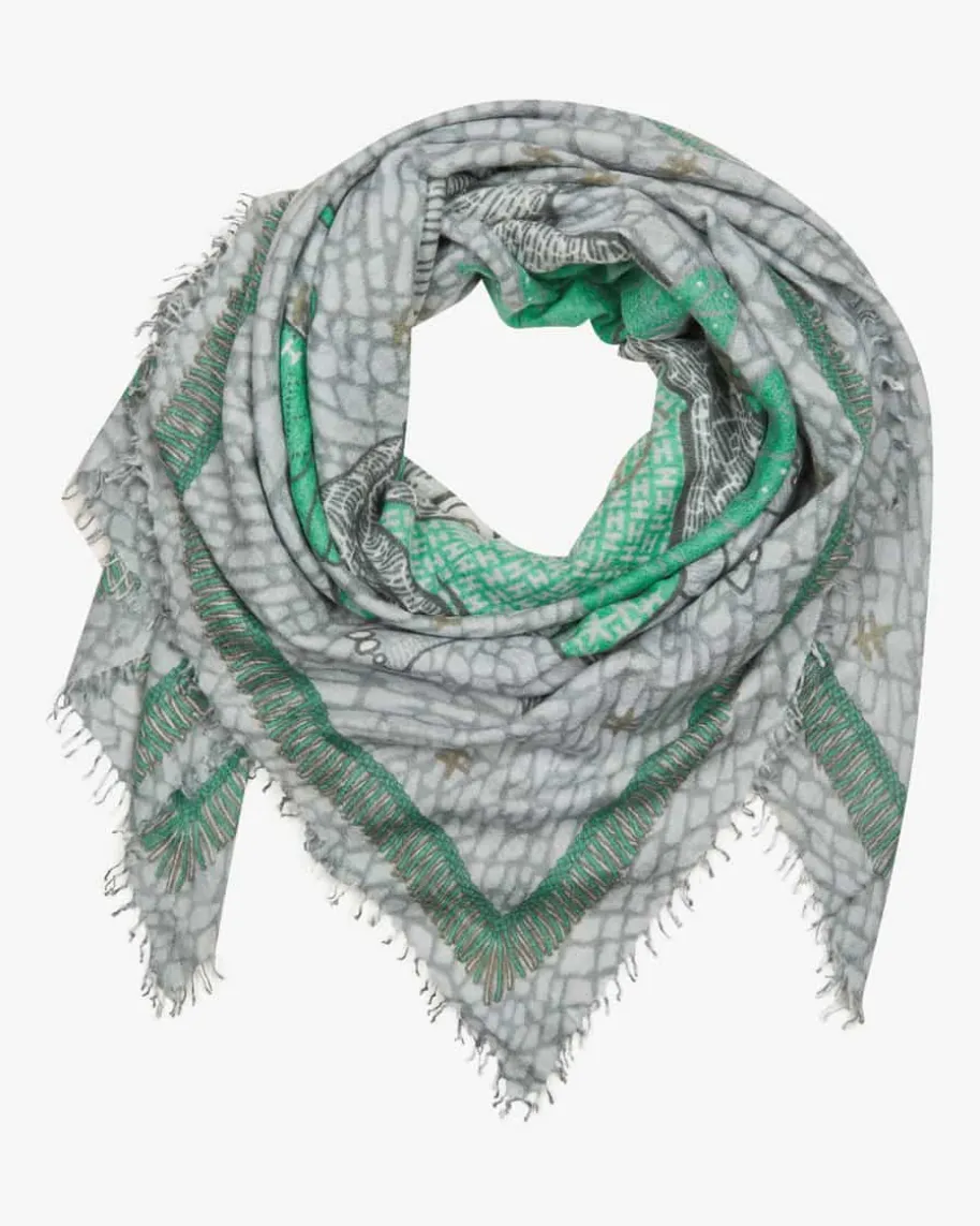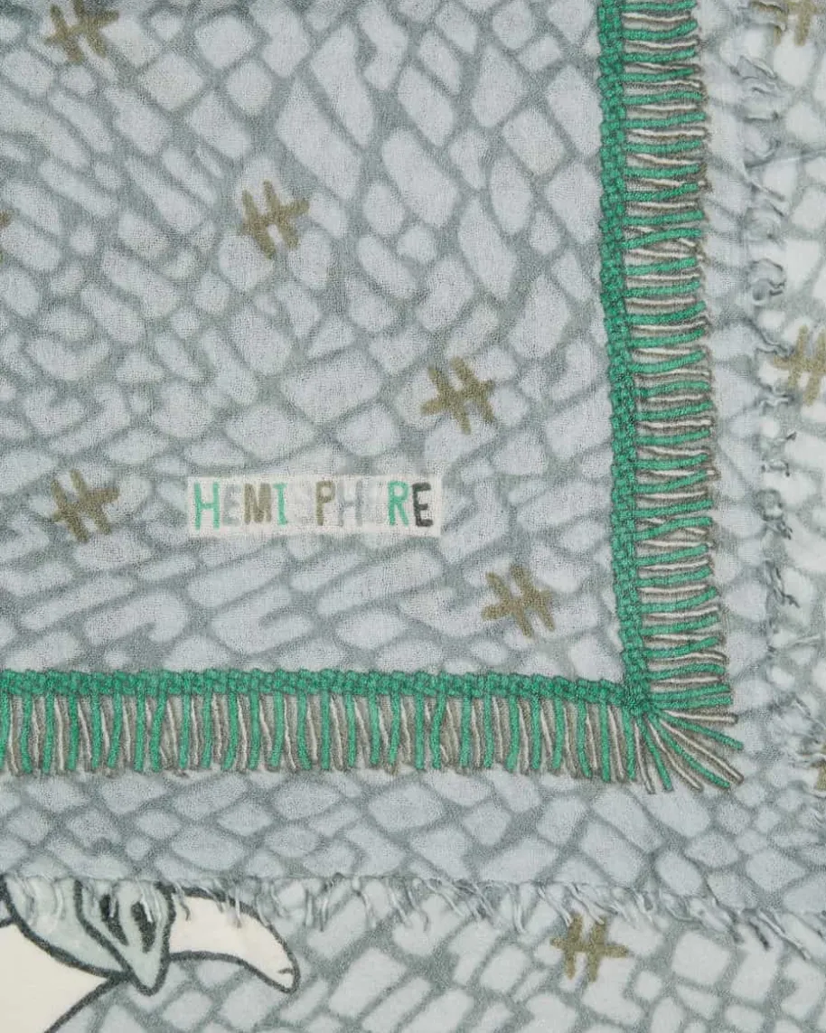 Lumbo Cashmere-Seiden-Schal für Damen von Hemisphere in Graugrün, Mint undTürkis.Während der semitransparente Cashmere-Mix ein stilvolles Accessoire mitbesonders angenehmer Haptik schafft, rundet das großflächige Elefanten-Motiv dasGesamtbild charmant ab.