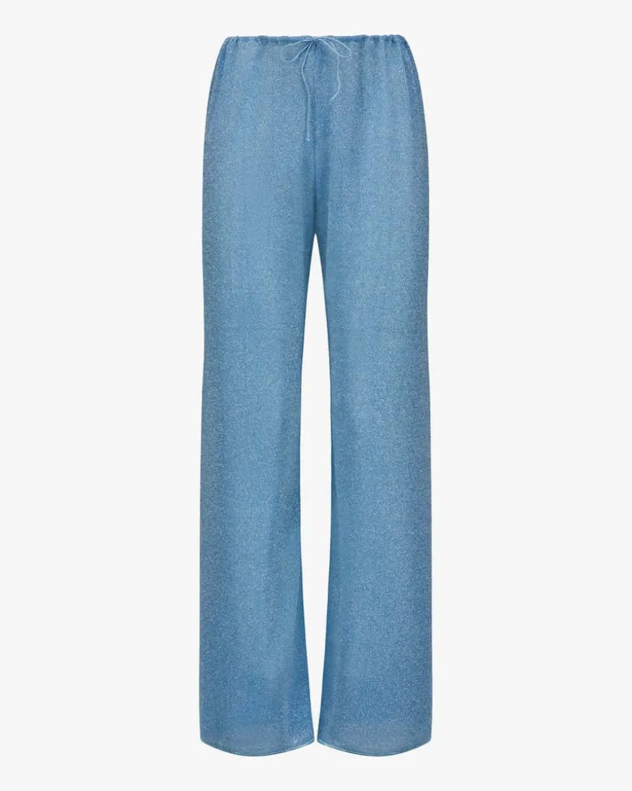 Lumiere Hose für Damen von Oséree in Türkis. Dank der extravagantenGlitzerfasern-Aufmachung in changierender Optik präsentiert sich das semi-transparente Modell mit modisch-femininem Flair, während die weite Passform einestilvolle Silhouette mit 70er-Jahre Touch kreiert. Das Modell kann mit dempassenden Oberteil getragen werden.