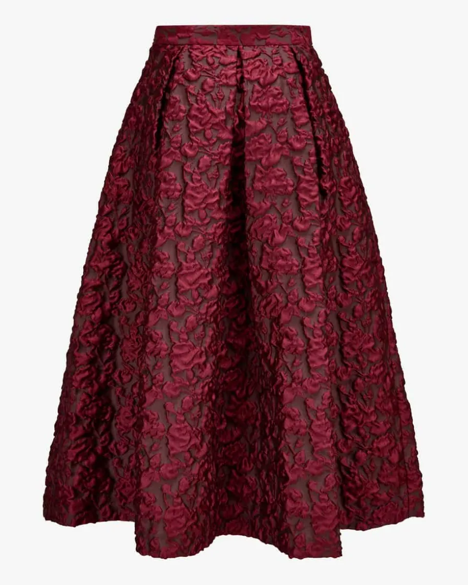 Luna Red Rock für Damen von Lunatica Milano in Rot und Dunkelrot. LunaticaMilanosteht für handgefertigte Röcke made in Italy – extravagant, farbenfroh undvoller La-Dolce-Vita-Charme. Mit changierendem, abstraktem Blumen-Dessin inhochwertiger Jacquard-Verarbeitung, femininer A-Linie und markanten Kellerfaltenwird dieses Modell zum echten Hingucker und verleiht jedem Outfit das gewisseEtwas.