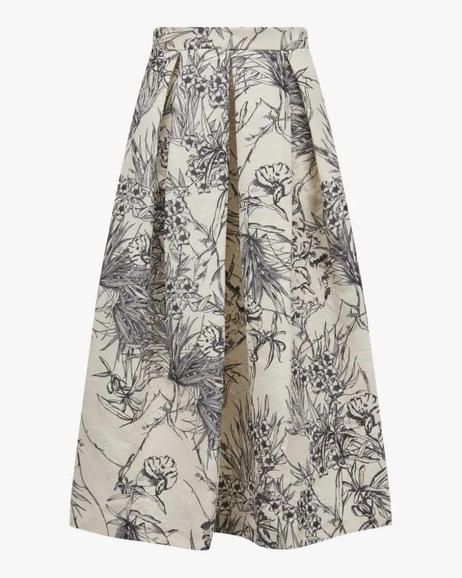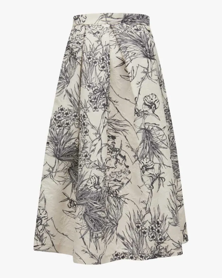 Luna Silva Rock für Damen von Lunatica Milano in Ivory und Schwarz. Während diestrukturierte Aufmachung in floralem, Blätter- Dessin für eine romantische Notesorgt, wird durch die ausgestellte Passform ein femininer Look kreiert – Einmodischer und zugleich eleganter Begleiter in Ihrer Garderobe.