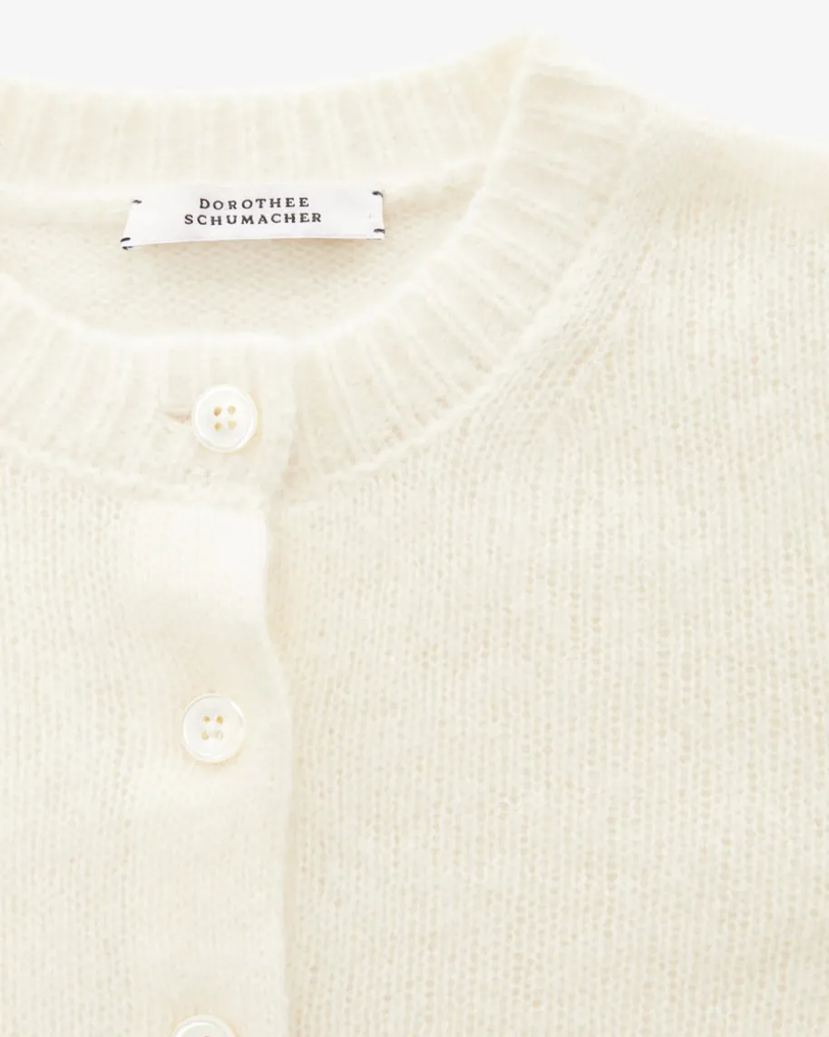 Luxury Love Cashmere-Strickjacke für Damen von Dorothee Schumacher in Creme.Feminine Power aus Deutschland – Dorothees Looks verbinden Stärke mitverspielter Eleganz. Auch dieses Strick-Modell präsentiert sich mit zeitloserSilhouette, während die besonders weiche Cashmere-Wolle angenehme Tragemomentegarantiert.
