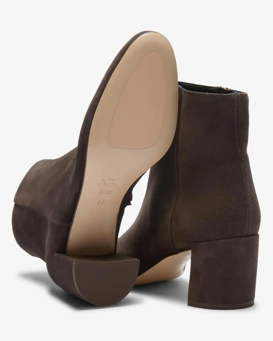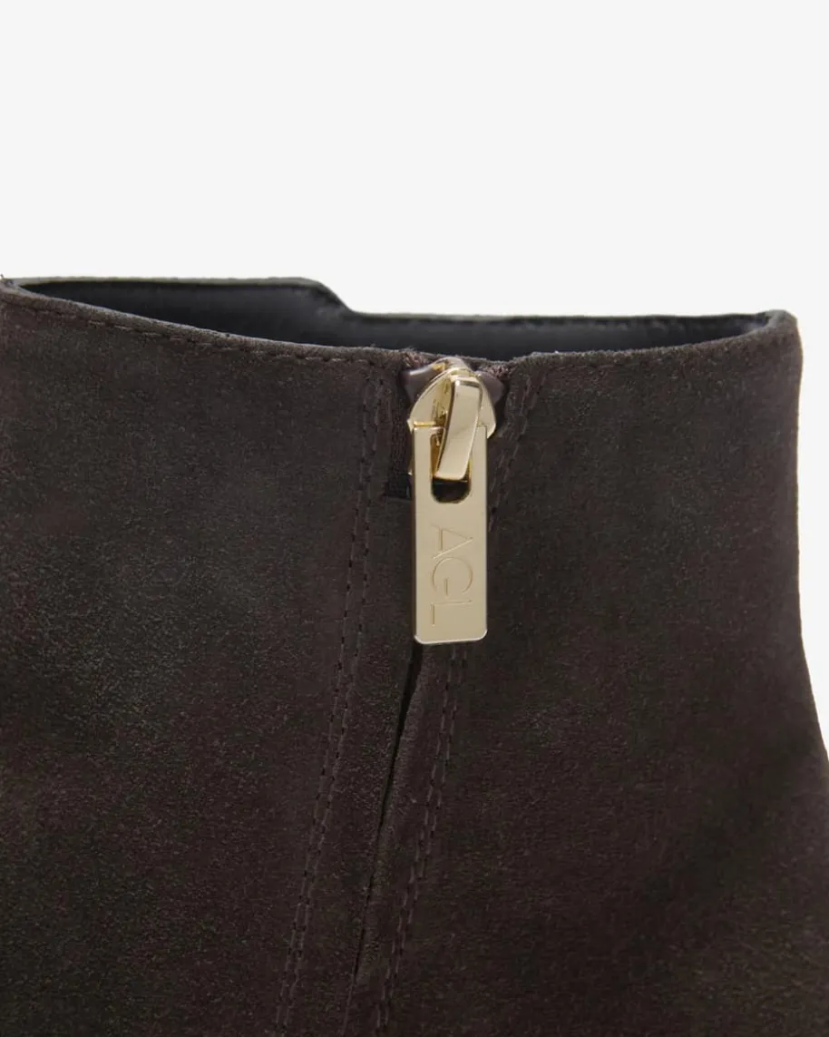 Lynn Stiefelette für Damen von AGL in Dunkelbraun. Während die hochwertigeVeloursleder-Qualität elegante Akzente setzt, avanciert dieses Modell dankklassischem Design zum zeitlosen Begleiter in der Übergangszeit.