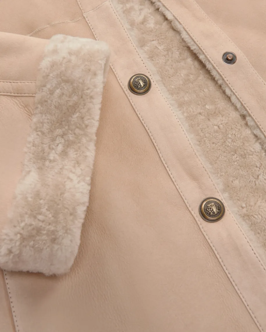 Maestro Felljacke für Damen von LODENFREY in Beige. Das Oversize-Modell bestichtdank der modischen Leder-Qualität als optisches Highlight, während die weicheFell-Innenseite angenehme Tragemomente verspricht.