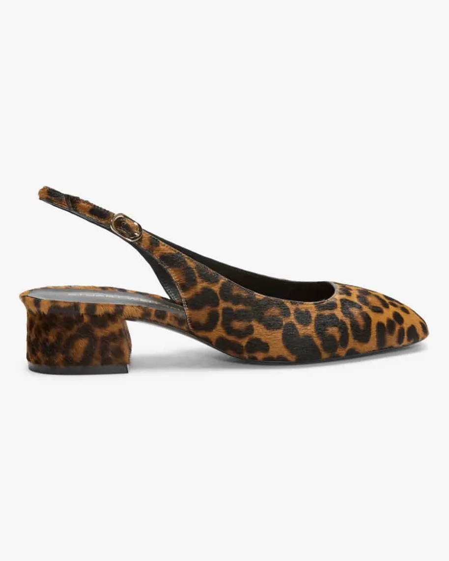 Maeve Slingback-Pumps für Damen von Stuart Weitzman in Cognac und Dunkelbraun.Das Modell präsentiert sich im modischen Leo-Look und stilvoller Karree-Form,während der Blockabsatz für einen angenehmen Tragekomfort sorgt. Die Fell-Optiksetzt zudem besondere Akzente.