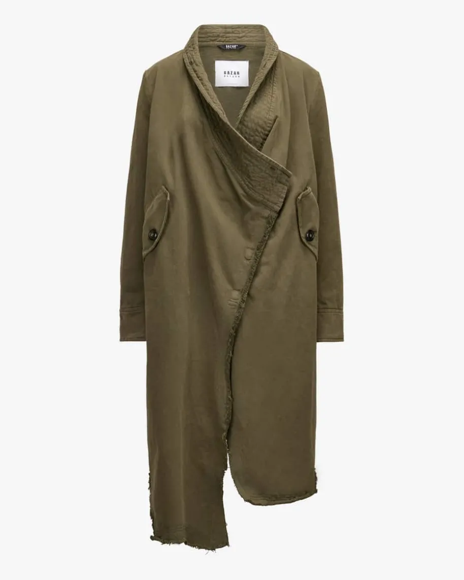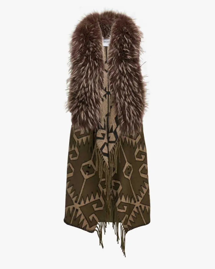 Mantel für Damen von Bazar Deluxe in Oliv und Braun. Das 2-in1-Modell inOversize-Aufmachung überzeugt dank dem raffinierten Schnitt als kombistarkerBegleiter, welcher durch das abtrennbare Cape mit Pelzkragen sowie Fransen-Details und grafischem Ethno-Muster individuelle Looks für Sie bereithält.