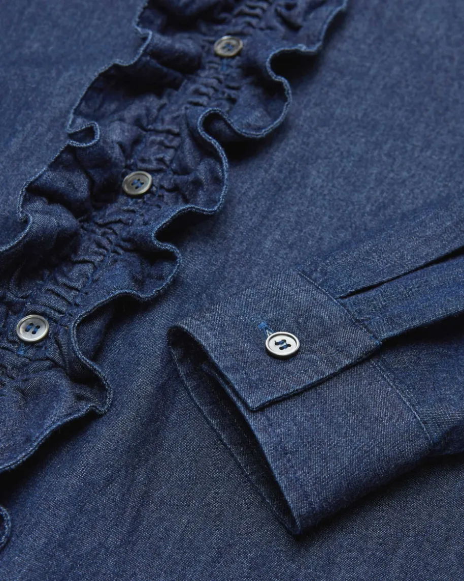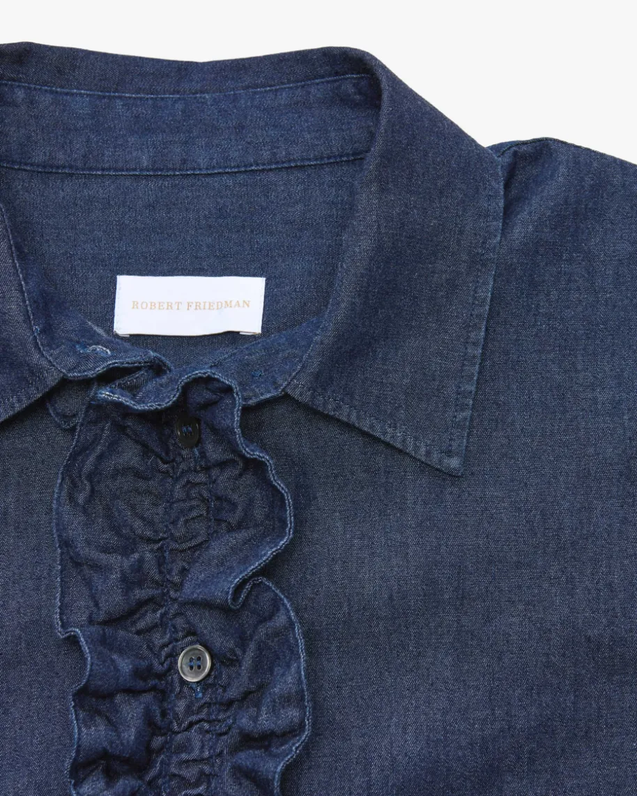 Mari Bluse für Damen von Robert Friedman in Navy. Das Label steht fürhochwertige Blusen und Hemden – italienische Stoffe, deutsche Passform,internationale Klasse. Auch dieses Modell begeistert dank leichter Baumwoll-Qualität als legerer Favorit, während die gerüschte Knopfleiste eine feminineNote verleiht.