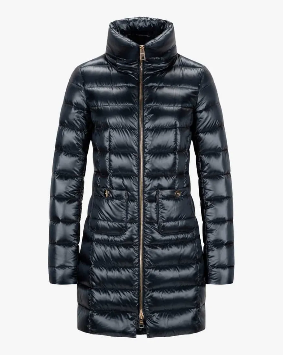 Maria Daunenmantel für Damen von Herno in Navy. Das italienische Label hatsich mit seinen besonders weichen und leichten Daunen-Modellen einen Namen inder Modebranche gemacht und ist für Liebhaber nicht mehr wegzudenken. Diesertaillierte Klassiker präsentiert sich in gewohnt changierender Stepp-Optik undhält an kalten Tagen nicht nur warm, sondern punktet auch durch das modischeErscheinungsbild.