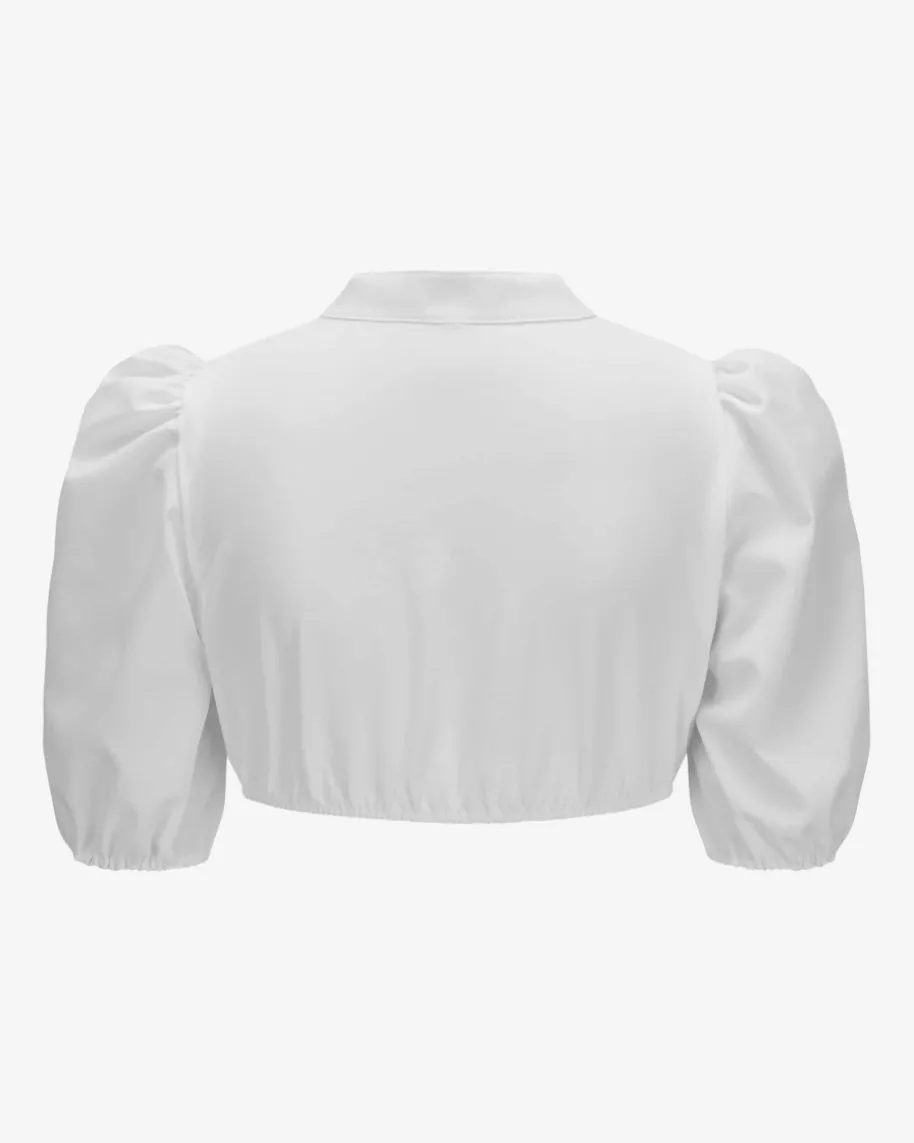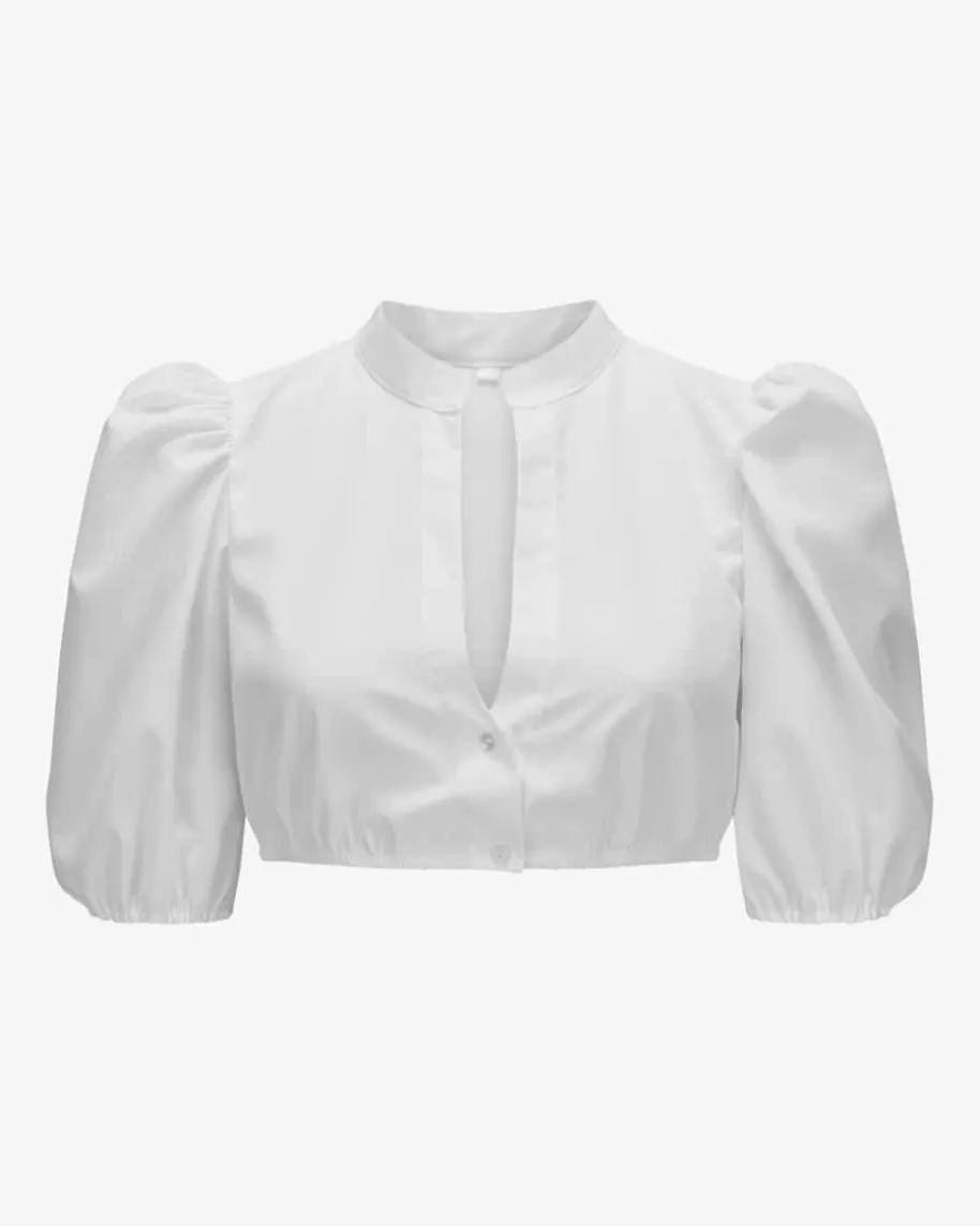 Maria Dirndlbluse für Damen von Giacomelli Trachten in Weiß. Die Marke steht fürhandgefertigte Trachtenmode mit alpiner Authentizität und viel Liebe zum Detail– gefertigt in Österreich. Das Modell punktet dank femininer Puffärmel instilvoller Aufmachung, während der dezente Stehkragen in Kombination mit demtief geschlitzten Ausschnitt das traditionelle Gesamtbild stilvoll inszenieren.
