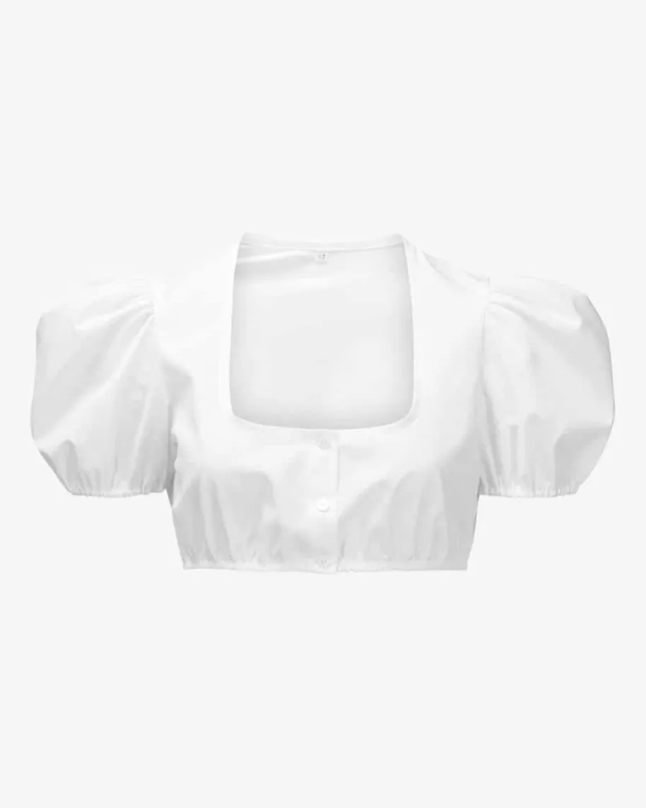 Mariella Dirndlbluse für Damen von Nicoletta Giacomelli in Weiß. Das Modellbegeistert mit tiefem Ausschnitt sowie romantischen Puffärmeln und avanciert sozum stilvollen Begleiter für Ihren Trachten-Look.