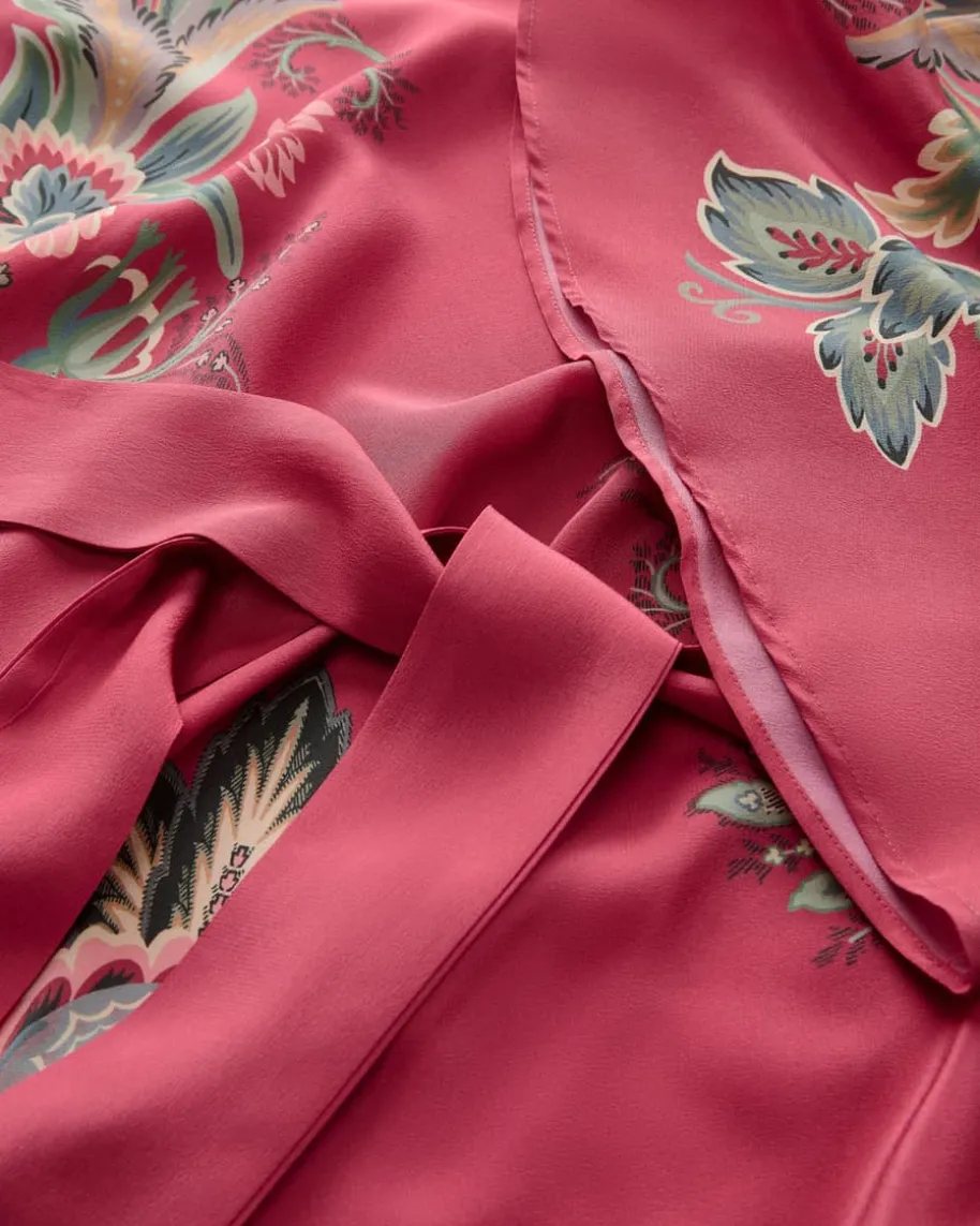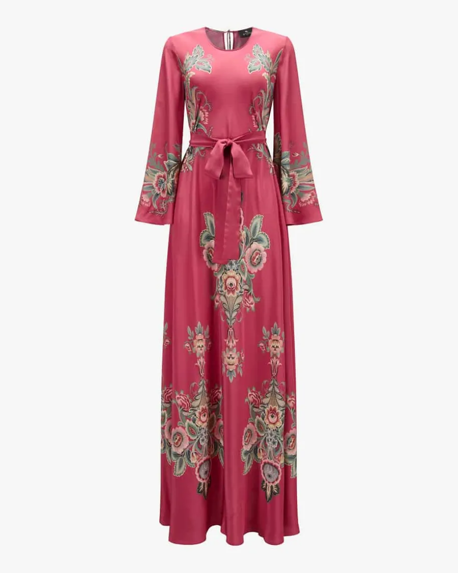 Maxi-Seidenkleid für Damen von Etro in Himbeere und Bunt. Das Modell präsentiertsich dank des labeltypischen Allover-Dessins mit floralem Motiv in modischerAufmachung, während die hochwertige Seiden-Qualität ein angenehmes Tragegefühlverspricht.