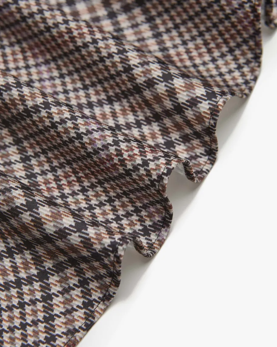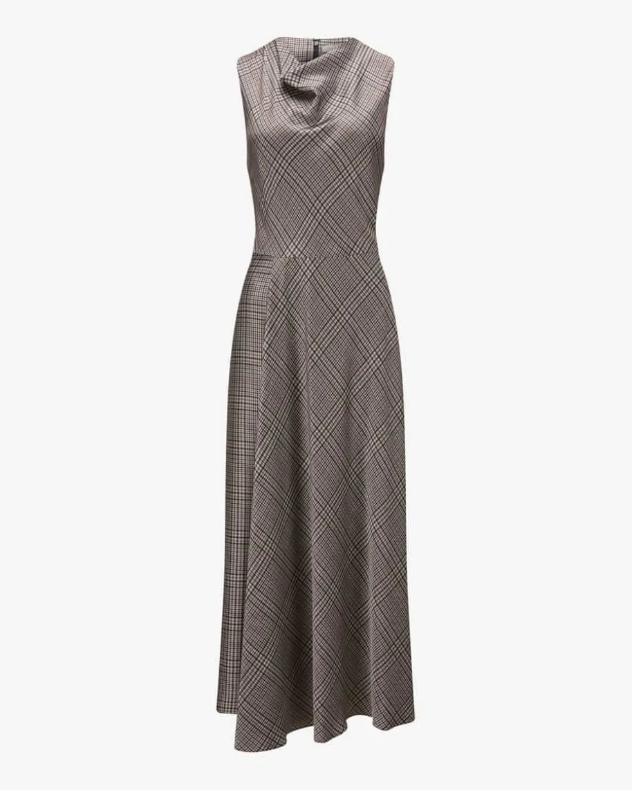 Maxikleid für Damen von Vince in Cognac, Schwarz und Beige. Das kalifornischeLabel steht für relaxed Luxury – edle Basics, weiche Stoffe und klare Schnitte.Dieses Modell in angenehmer Haptik überzeugt in fließender Aufmachung, währendder Wasserfall-Ausschnitt und das Karo-Dessin einen besonderen Favoritenkreiert.