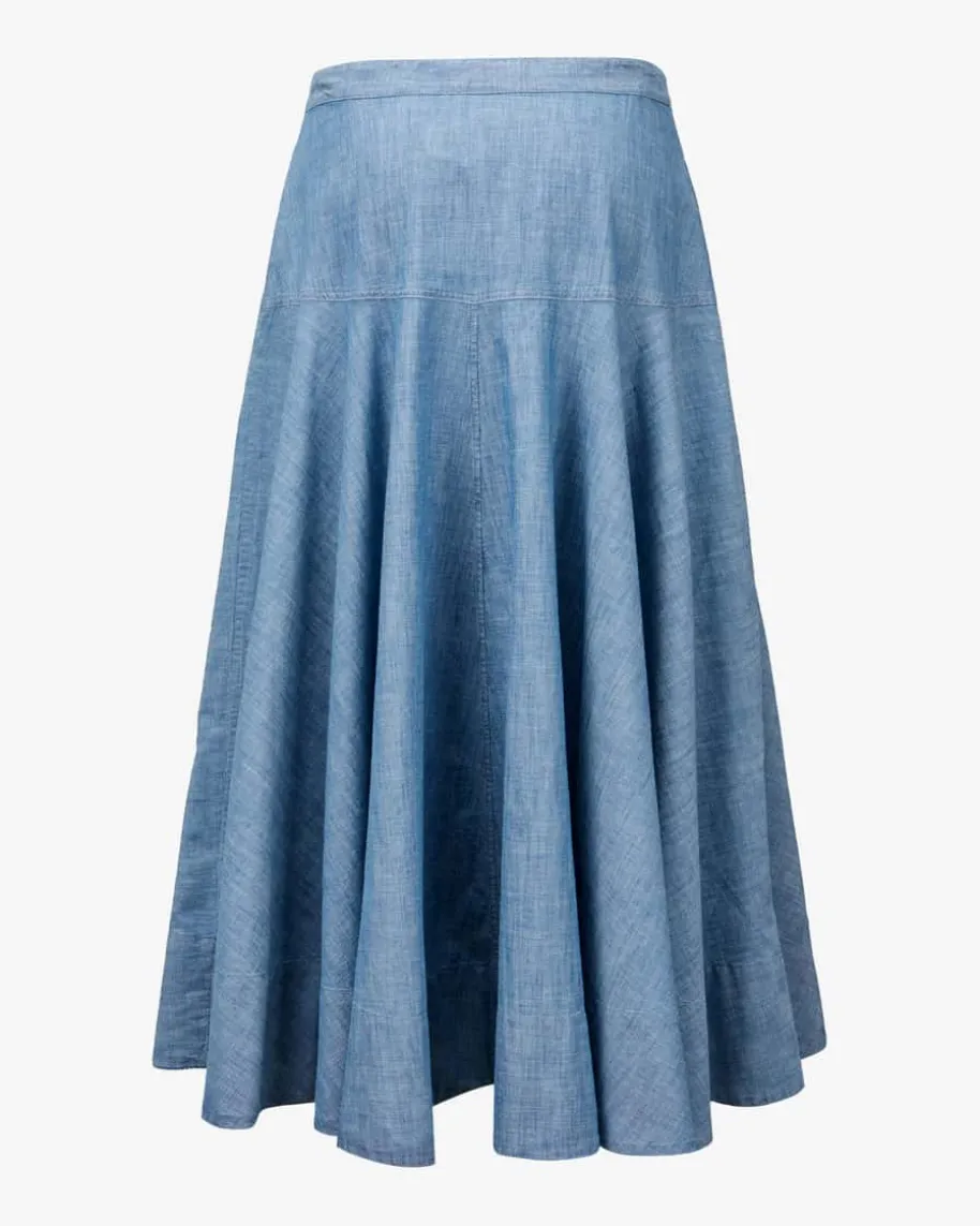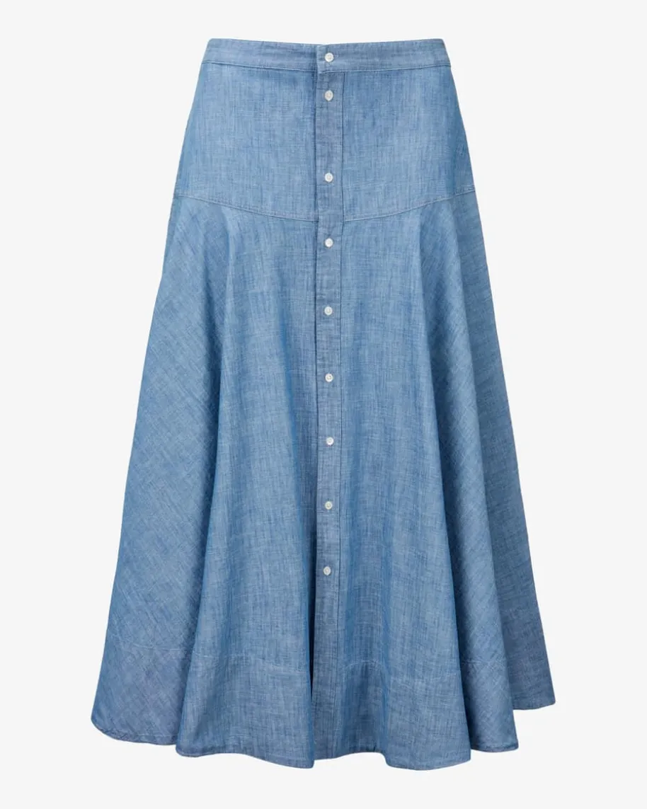 Maxirock für Damen von Polo Ralph Lauren in Blau. Das Modell begeistert mitleichter Chambray-Qualität im Denim-Look und femininem Schwung, während diedurchgehende Knopfleiste den Style mit modernem Country-Touch abrundet.