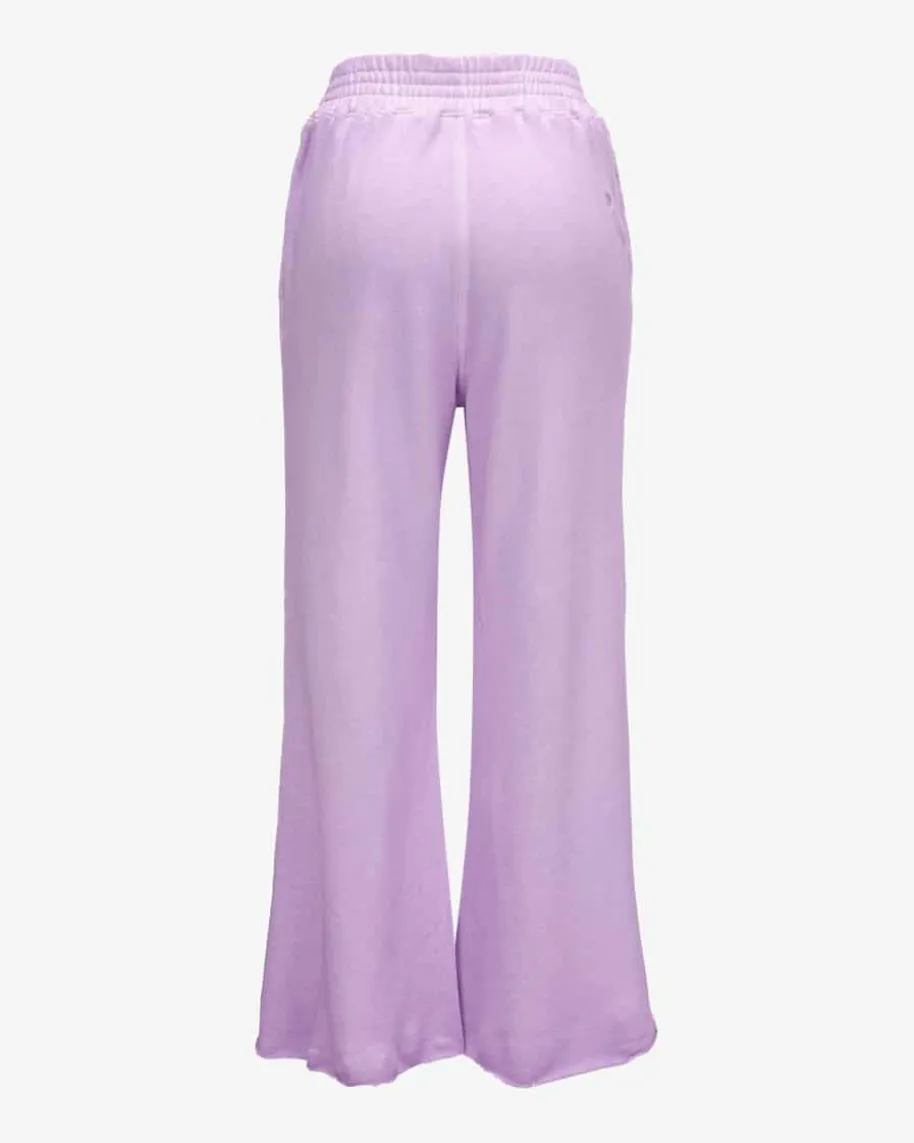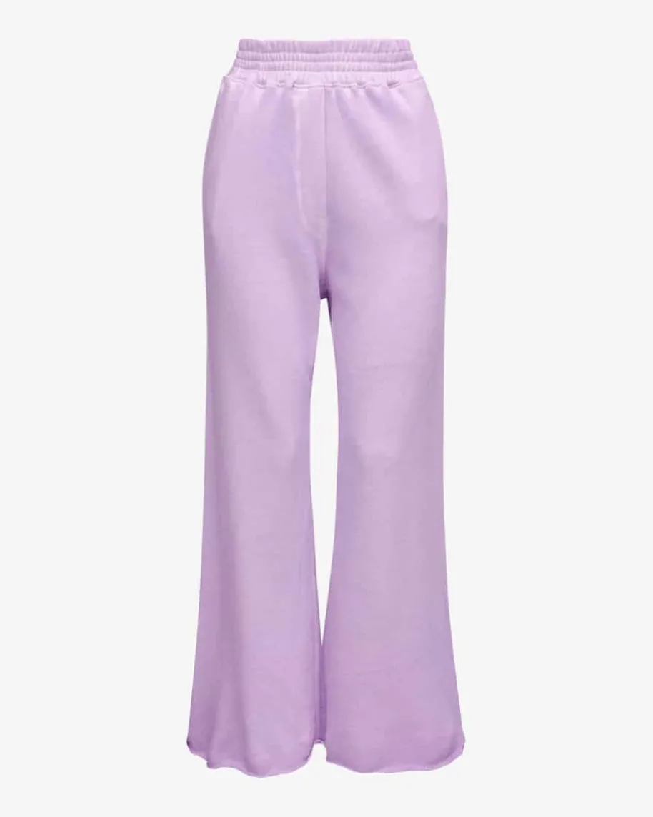 Mayari Sweathose für Damen von Love Joy Victory in Flieder. Das Modell ausangenehmer Bio-Baumwolle präsentiert sich in legerer Sweat-Aufmachung, währenddas ausgestellte Bein dem sonst sportivem Look ein modernes Update verleiht.Zugleich verleiht die angeraute Innenseite ein angenehmes Tragegefühl.