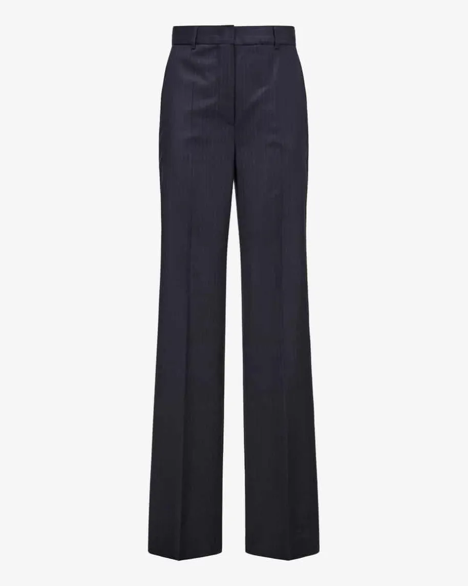Medium Schurwollhose für Damen von Max Mara Studio in Navy. Weiblich, modern,tragbar – Max Maras femininere Linie. Auch dieses Modell in hochwertigerSchurwolle überzeugt mit weicher Haptik und angenehmen Tragemomenten, währenddas gerade Bein und Nadelstreifen-Dessin einen zeitlosen Begleiter für feminineOffice-Styles schaffen.