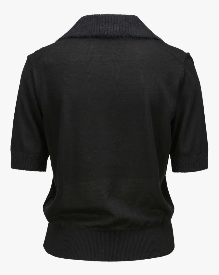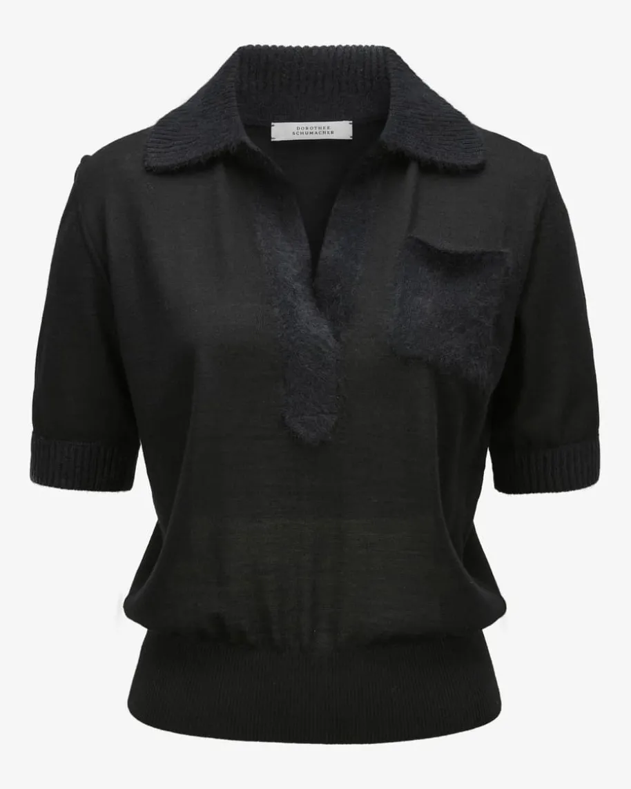 Merino Romance Strickshirt für Damen von Dorothee Schumacher in Schwarz.Feminine Power aus Deutschland – Dorothees Looks verbinden Stärke mitverspielter Eleganz. Auch dieses Modell aus feiner Schurwolle präsentiert sichmit angenehm-leichter Strick-Haptik, während Details in weicher Brushed-Aufmachung sowie der Ausschnitt im femininem Polo-Style einen modischenCharakter verleihen.