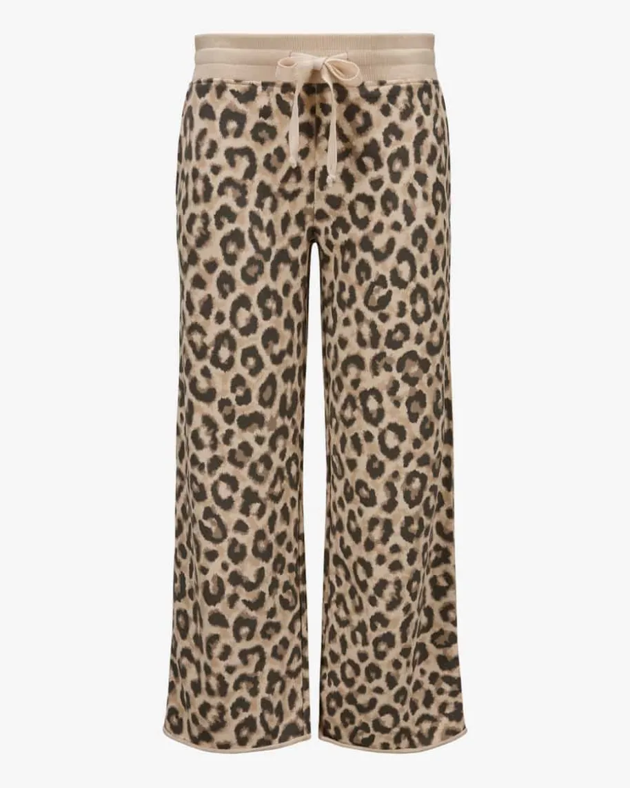 Merle Sweathose für Damen von Juvia in Sand, Dunkelbraun und Hellbraun. Stylesmit Wohlfühlcharakter – Das verspricht das Label Juvia. Das Modell punktet dankder leichten Sweat-Qualität mit einer angenehmen Haptik mit besondersflauschiger Innenseite, während das weite Bein in verkürzter Passform sowie dasLeomuster einen modischen Favoriten für komfortable Lounge-Looks schafft.
