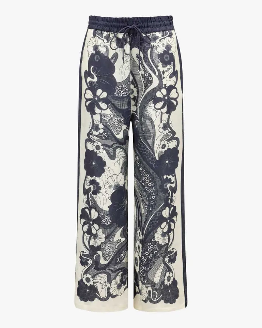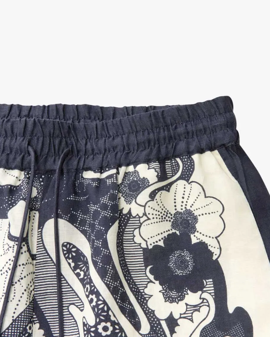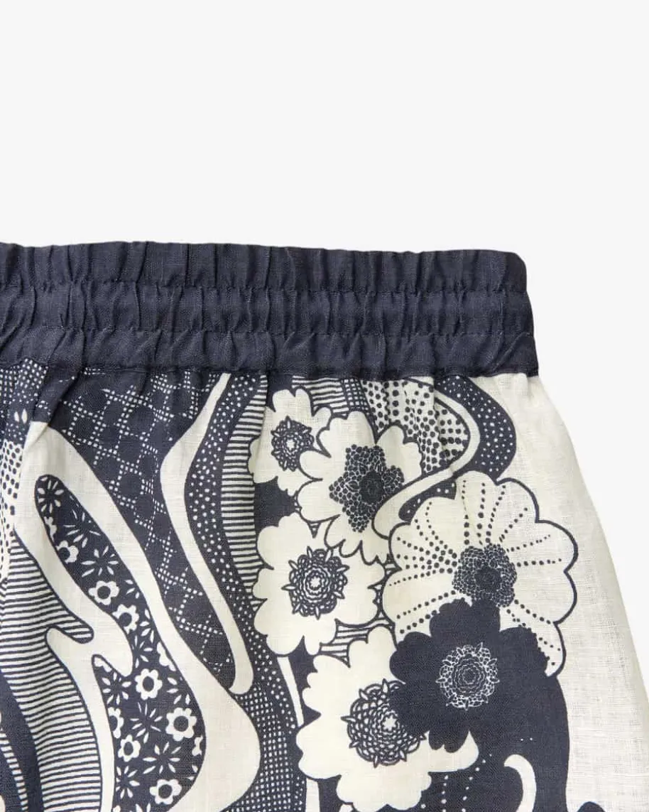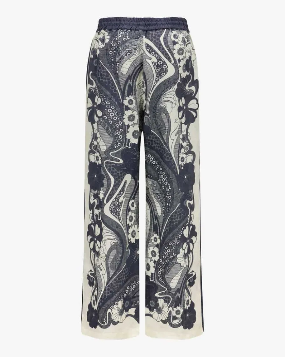 Mickey Leinenhose für Damen von Alémais in Navy und Creme. Das Modell in weitemSchnitt überzeugt dank hochwertiger europäischer Leinen-Qualität, währendklassische Details und das florale Dessin einen besonderen sommerlichenBegleiter kreieren. Kreieren sie gekonnt einen Allover-Look mit der passendenBluse.