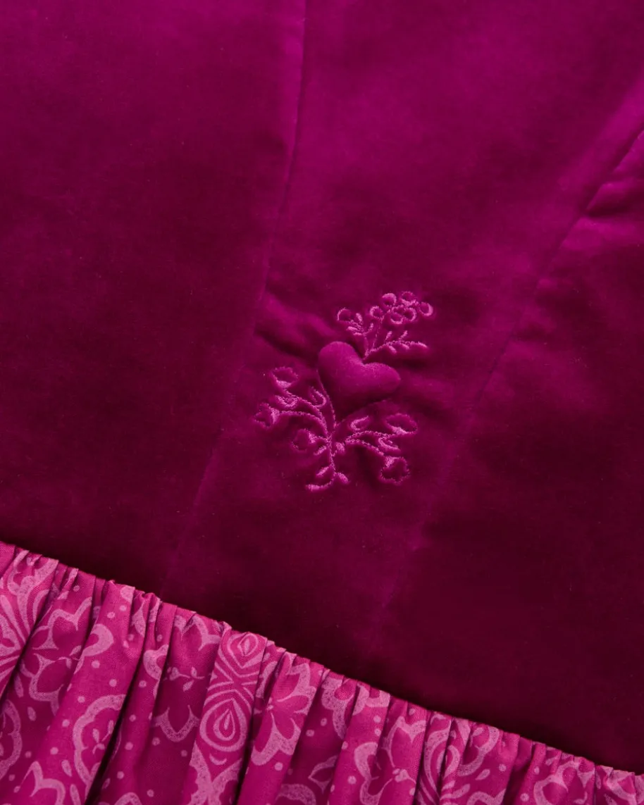Midi-Wiesndirndl mit Schürze für Damen von LODENFREY in Beere. JahrelangeErfahrung, hochwertige Verarbeitung und viel Liebe zum Detail zeichnen dieexklusiven Kreationen aus. Das Mieder in edel wirkender Samt-Optik wird dank desgereihten Rocks mit dem floralen Ornamente-Muster stilvoll ergänzt, während diechangierende Schürze das hochwertige Gesamtbild gekonnt vollendet. Gleichzeitigverleiht eine raffinierte Herz-Stickerei auf der Rückseite des Mieders IhremTrachten-Look das gewisse Etwas.