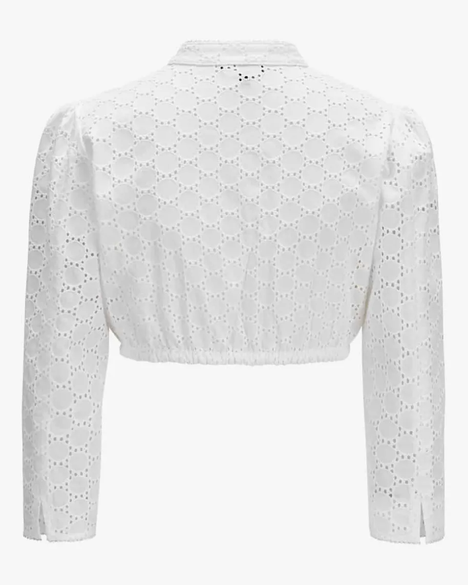 Mimi Dirndlbluse für Damen von Kinga Mathe in Weiß. Die Münchner Marke steht fürglamouröse Trachtenmode und elegante Dirndl mit Couture-Flair. Das Langarm-Modell aus angenehmer Baumwolle zeichnet sich durch die modernen Stickereien unddie Schlaufenborten aus und avanciert dank klassischer Details zum perfektenDirndl-Begleiter.