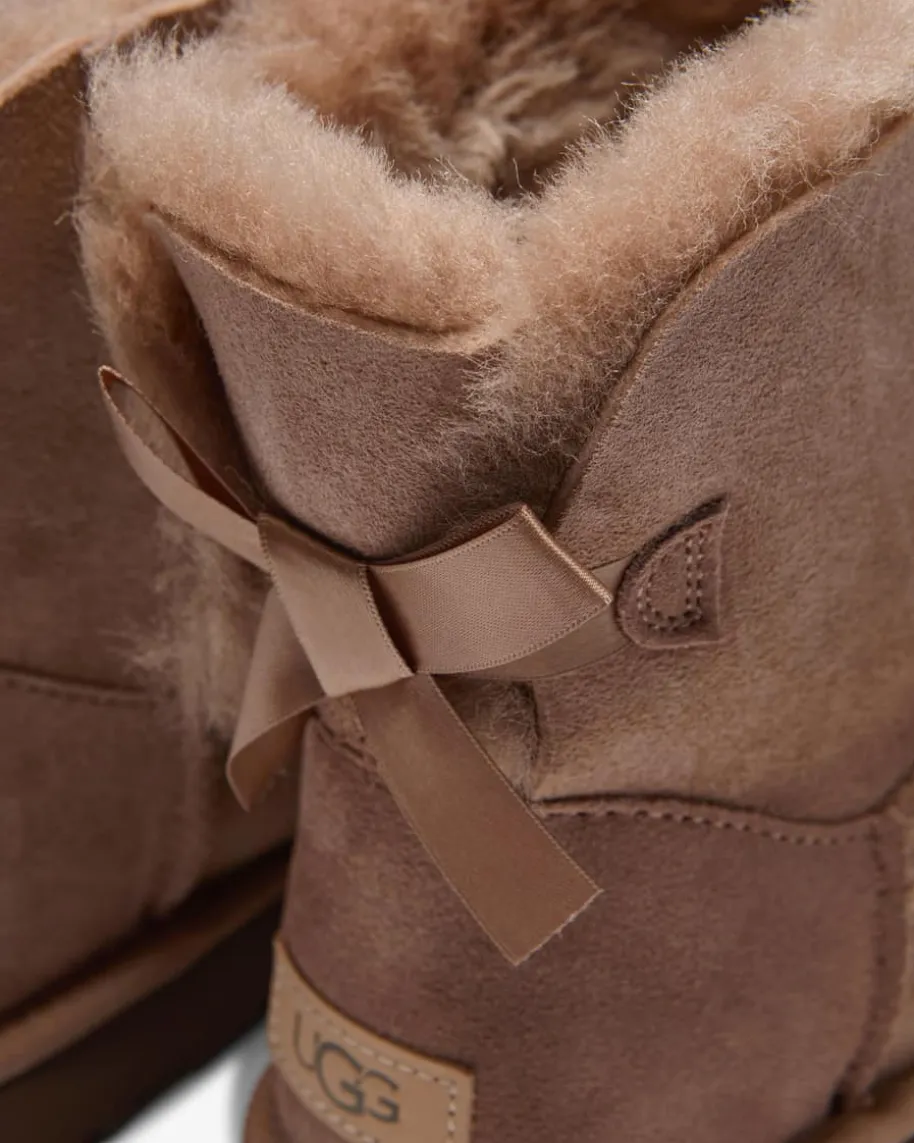 Mini Bailey Bow Boots für Damen von UGG in Flieder. Leicht, weich und warm -Die Stiefel des Kult-Labels begeistern durch das wasser- sowie schmutzabweisendeLammleder. Dank charakteristischem Lammfell-Futter wird für die nötige Wärmegesorgt, während die Treadlite-Laufsohle mit rutschfestem Profil sicheren Haltverspricht.