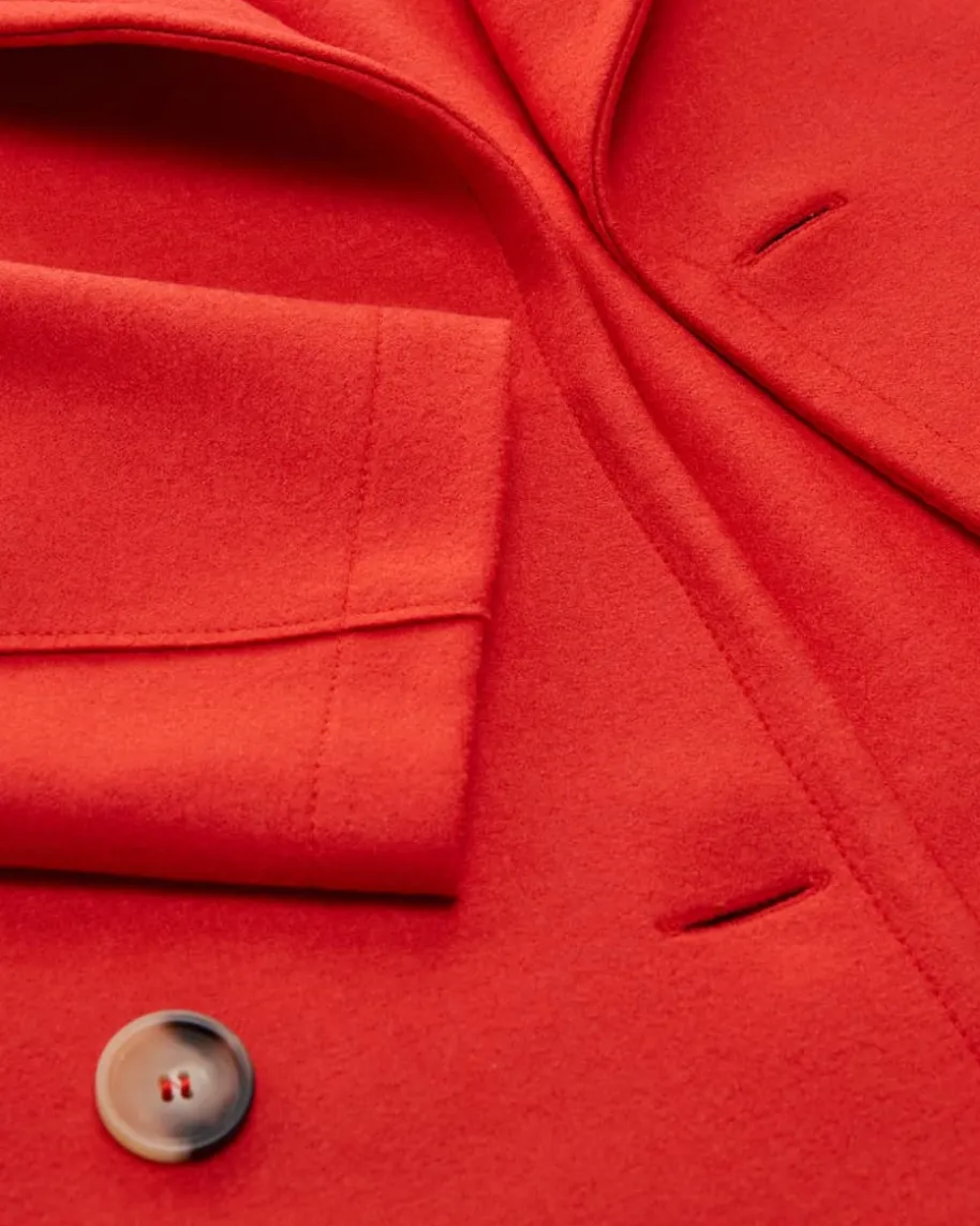 MLX Jacke für Damen von Harris Wharf London in Rot. In London entworfen und inItalien gefertigt – die Geschwister Giulia und Aldo Acchiardi haben es geschafftdas Label zu internationalem Erfolg zu bringen. Das zweireihige Modellbegeistert mit der hochwertigen Schurwoll-Qualität, während der großeReverskragen das Gesamtbild harmonisch ergänzt.