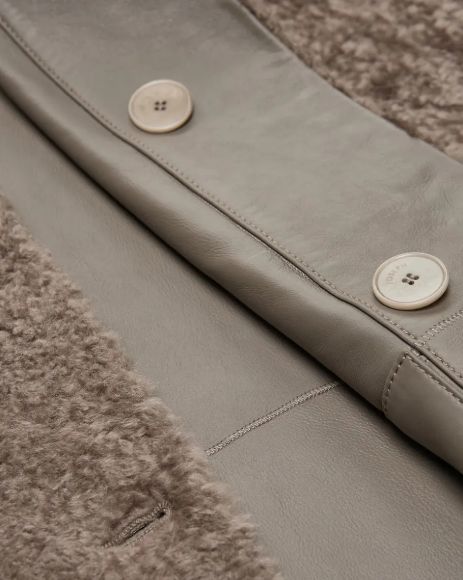 Molin Wende-Lammfellweste für Damen von Joseph in Taupe. Das Londoner Labelsteht für moderne Klassiker mit architektonischer Klarheit – luxuriöse Basics inperfekter Passform. Auch dieses Modell besticht mit Wendefunktion welchezahlreiche Styling-Möglichkeiten schafft, während das weiche Lammfell fürbesondere Tragemomente sorgt, rundet der breite Kragen den Gesamtlook harmonischab.
