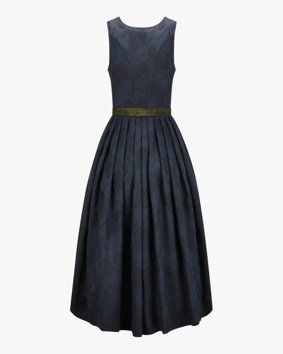 Monika Dirndl lang mit Schürze für Damen von Gottseidank in Navy und Oliv. Dankdes floralen Musters erhält der Artikel einen traditionell-femininen Charme,während klassische Details den letzten Schliff verleihen. Die schlichte Schürzerundet das Gesamtbild harmonisch ab.