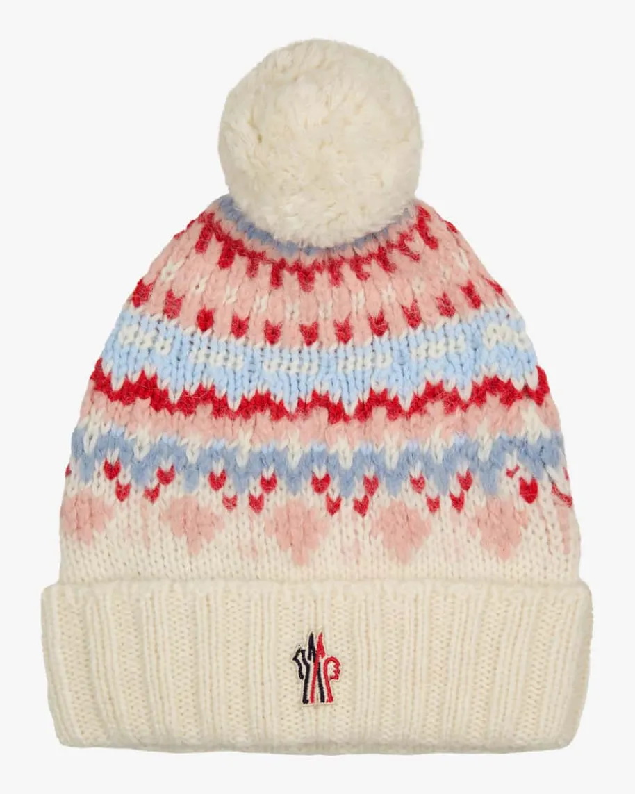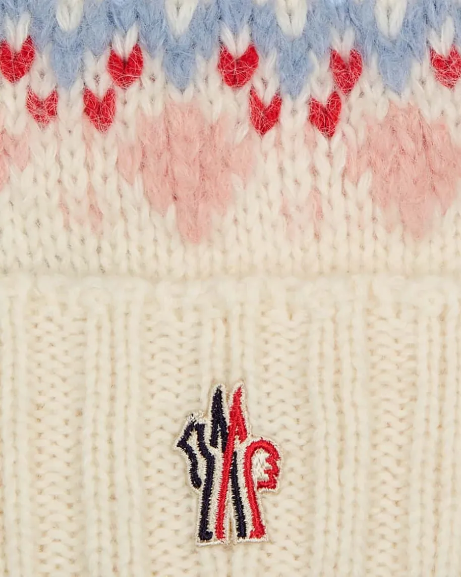 Mütze für Damen von Moncler Grenoble in Creme, Rosa und Hellblau. Das Modell infarbenfrohem Dessin begeistert dank des hochwertigen Woll-Mix mit angenehmenTragemomenten, während das Logo- Emblem sowie der Bommel die Mütze zu einemWinterfavoriten machen.
