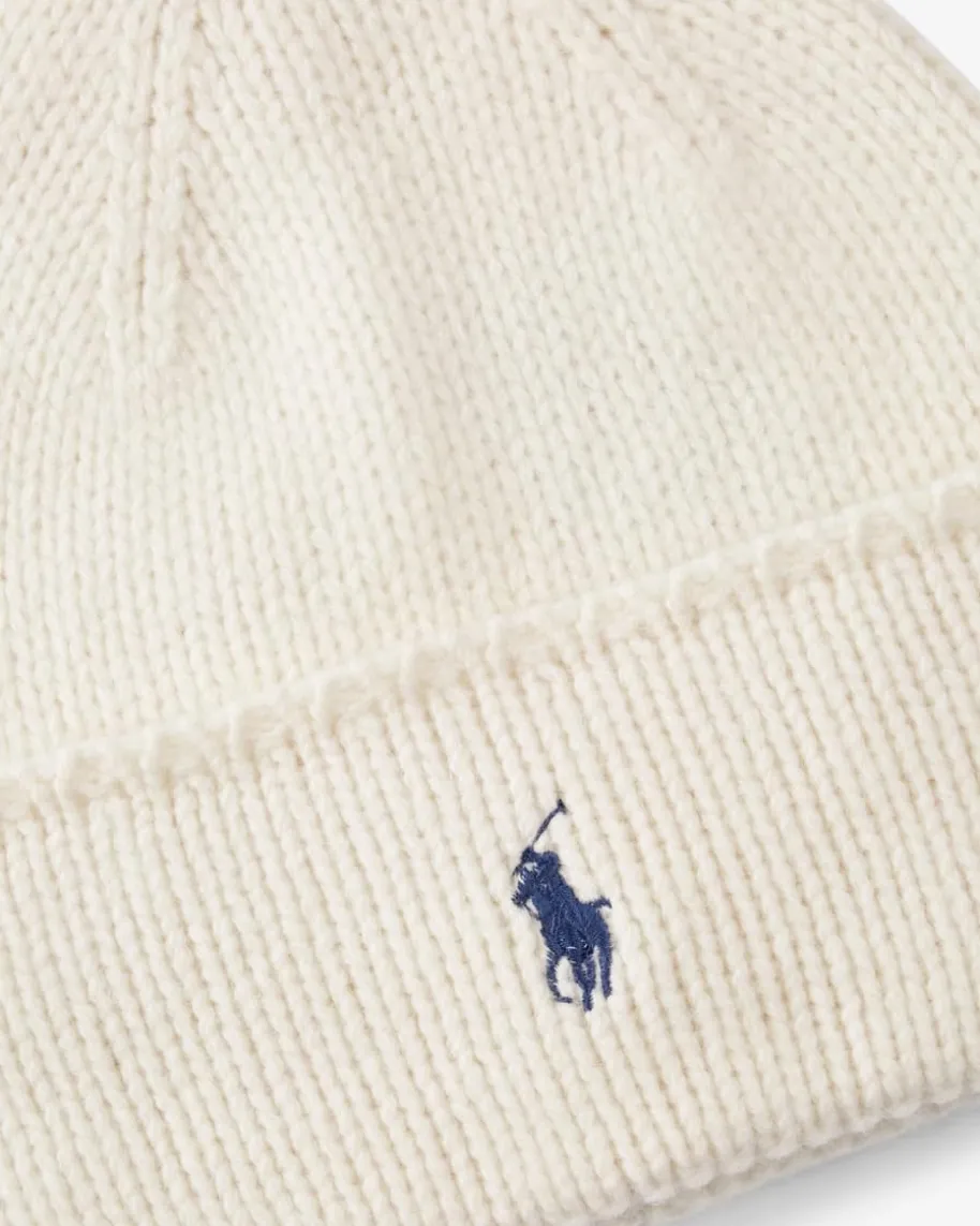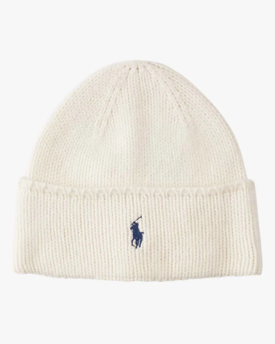 Mütze für Damen von Polo Ralph Lauren in Off-White. Das Modell aus hochwertigerWoll-Qualität begeistert mit weichem Griff, während das zeitlose Rippstrick-Design mit charakteristischen Poloreiter-Stickerei einen modernen und warmenBegleiter für kühle Tage kreiert.