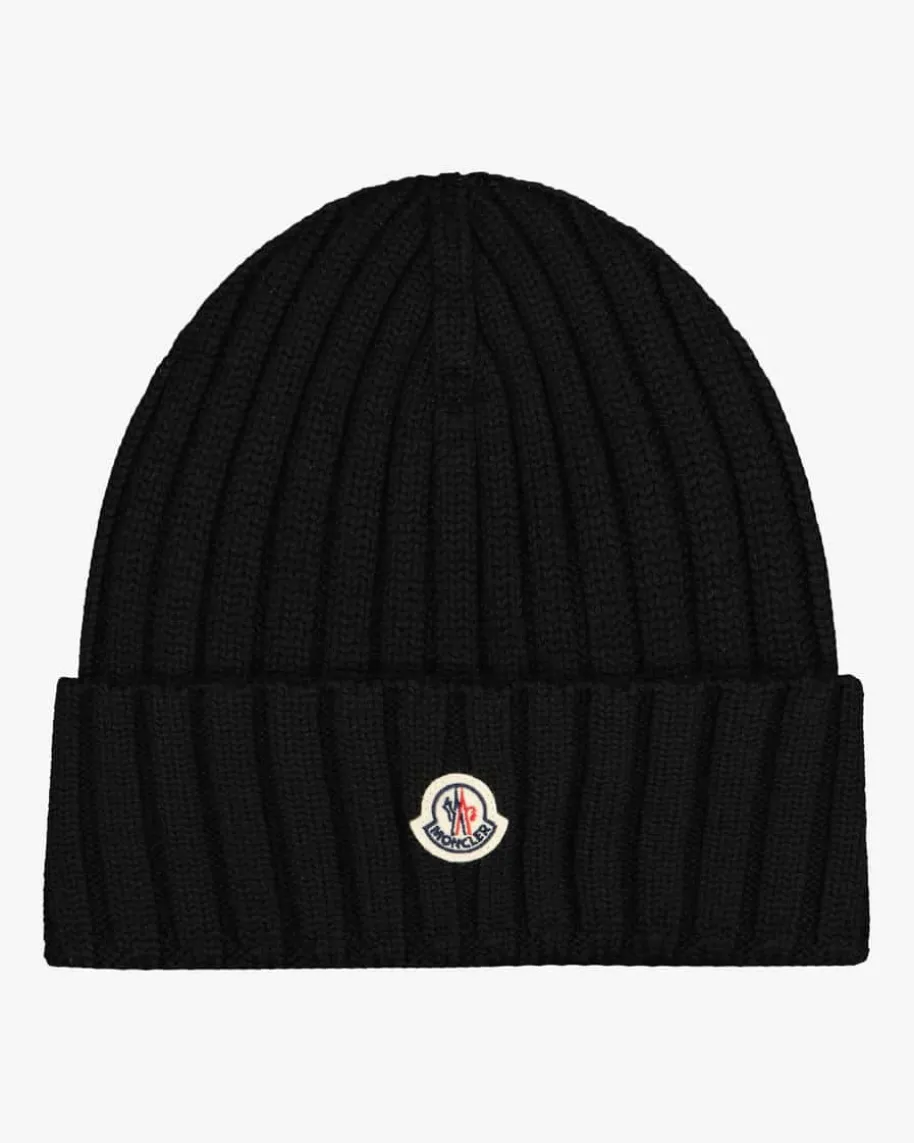 Mütze für Damen von Moncler in Schwarz. Das Modell aus angenehmer Schurwoll-Qualität avanciert durch sein zeitloses Design und softes Tragegefühl zumperfekten Begleiter für den Winter. Die labeltypische Logo-Applikation schafftes zudem, modische Akzente zu setzen.