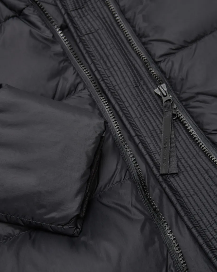 Mystique Daunenmantel für Damen von Canada Goose in Schwarz. ZweckmäßigesDesign, orientiert an den rauen Bedingungen der Arktis, ist der Grundstein füralle Kollektionen von Canada Goose. Auch dieses Modell in sportiver Stepp-Optikbegeistert dank hochwertiger und optimal isolierender Daunen-Feder-Füllung alswärmender Outdoor-Begleiter, welcher durch die taillierte Passform einenfemininen Alpine-Chic-Charakter erhält.