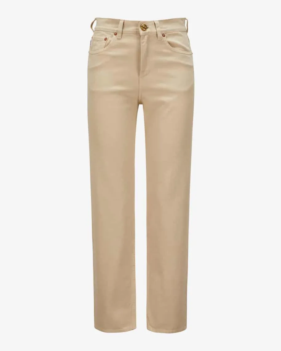 Nariida Paso Jeans für Damen von Blazé Milano in Beige. Das Modell überzeugt mitrobuster Denim-Qualität, während die kupferfarbenen Nieten in Kombination mitdem goldfarbenen Knopf einen angesagten Jeans-Favoriten kreiert. Logo-Detailssowie die charakteristische Logo-Stickerei runden den Look labeltypisch ab.