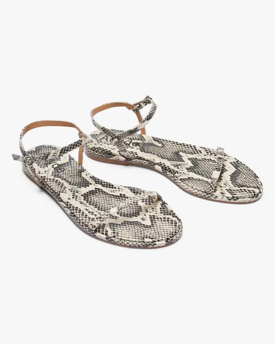 Nettie Snake Sandalen für Damen von Aeyde in Creme und Schwarz. Das Modell aushochwertigem Leder wird durch die extravagante Schlangenleder-Optik und diezarten Riemen gekonnt in Szene gesetzt. Ein stilvoller Begleiter für sommerlicheLooks.