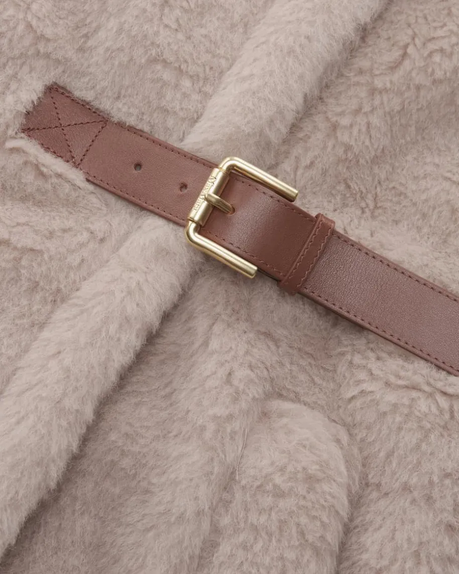 New Abavo 1 Cape für Damen von Max Mara in Sand. Eine elegante Jacken-Alternative – Das Modell punktet dank hochwertigem Alpakawoll-Seiden-Mix sowohlhaptisch als auch optisch, während die elastischen Einsätze an der Taille sowieder integrierte Ledergürtel eine feminine Silhouette zaubern.