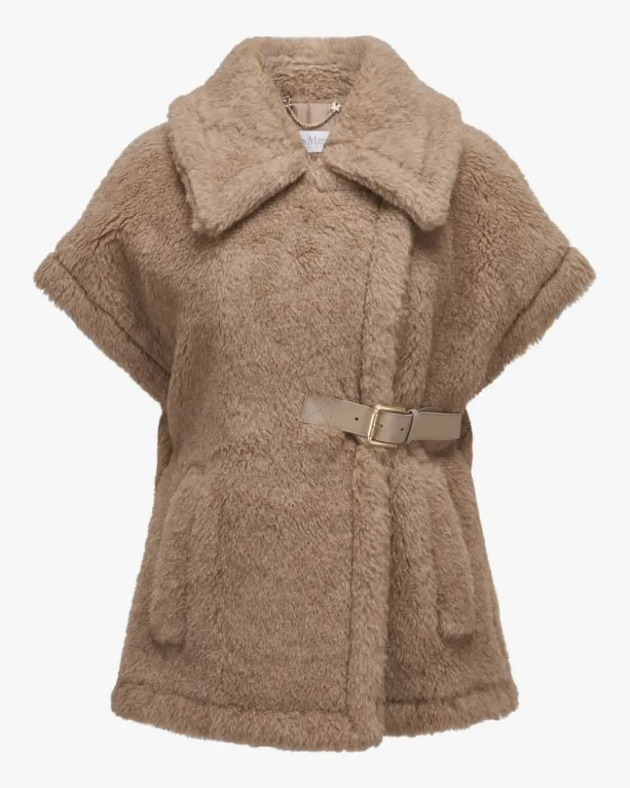 New Abavo 4 Cape für Damen von Max Mara in Haselnuss. Eine elegante Jacken-Alternative – Das Modell punktet dank hochwertigem Alpakawoll-Cashmere-Mixsowohl haptisch als auch optisch, während die elastischen Einsätze an der Taillesowie der integrierte Ledergürtel eine feminine Silhouette zaubern.