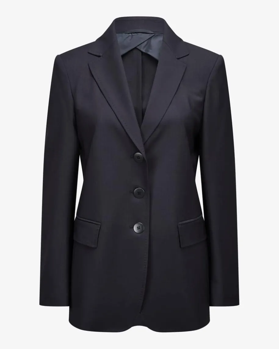 Nice Blazer für Damen von Max Mara Studio in Navy. Das Modell zeigt sich dankder taillierten Passform mit Schulterwattierung in femininer Aufmachung, währenddie glatte Schurwoll-Verarbeitung dem Office-Klassiker eine angenehme Haptikverleiht.