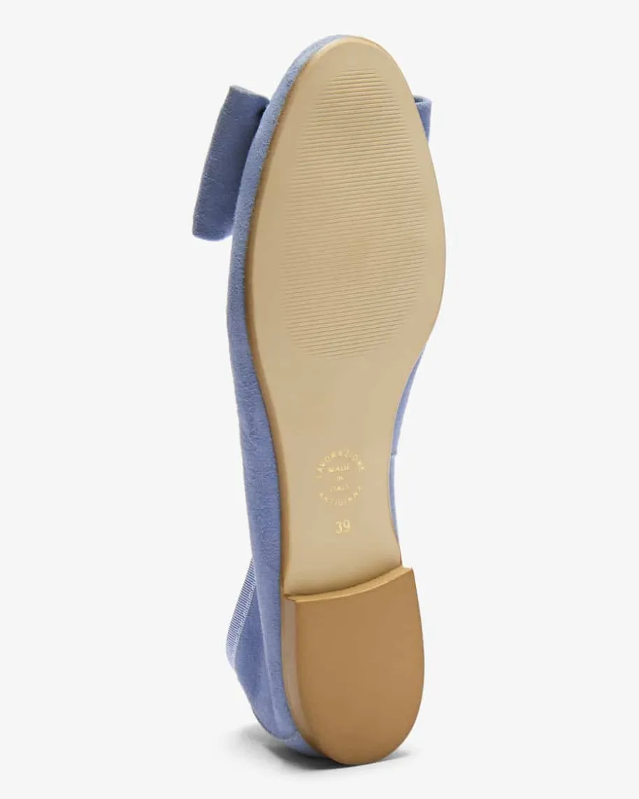 Noemi Ballerinas für Damen von LODENFREY in Hellblau. Dank der Verwendung vonsofter Veloursleder-Qualität überzeugt das Modell sowohl haptisch als auchoptisch, während die extravagante Schleifen-Applikation den Look mit besondererNote vollendet.