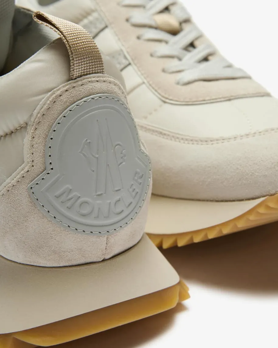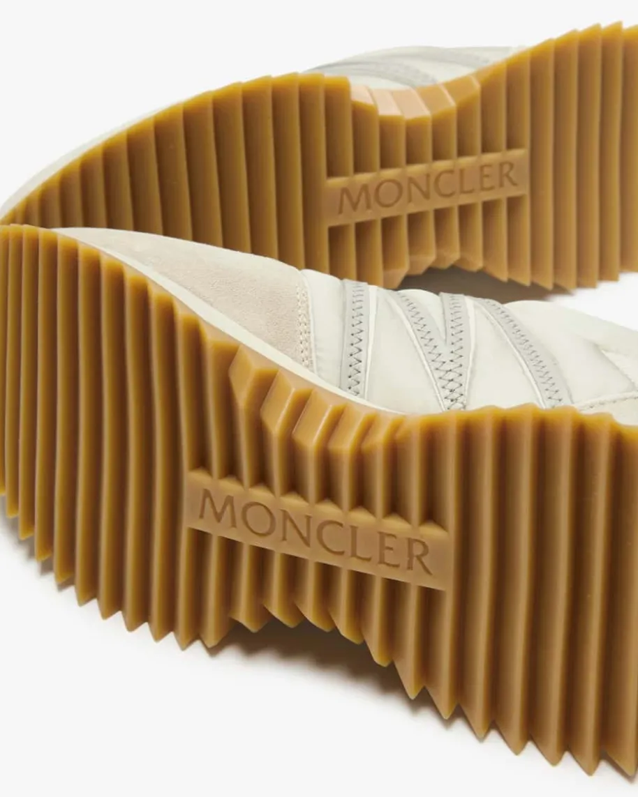 Pacey Sneaker für Damen von Moncler in Hellgrau. Das Modell zeichnet sich durchdie Kombination aus Veloursleder-Details und textilen Partien aus, während dersportive Look einen legeren Alltagsbegleiter kreiert.