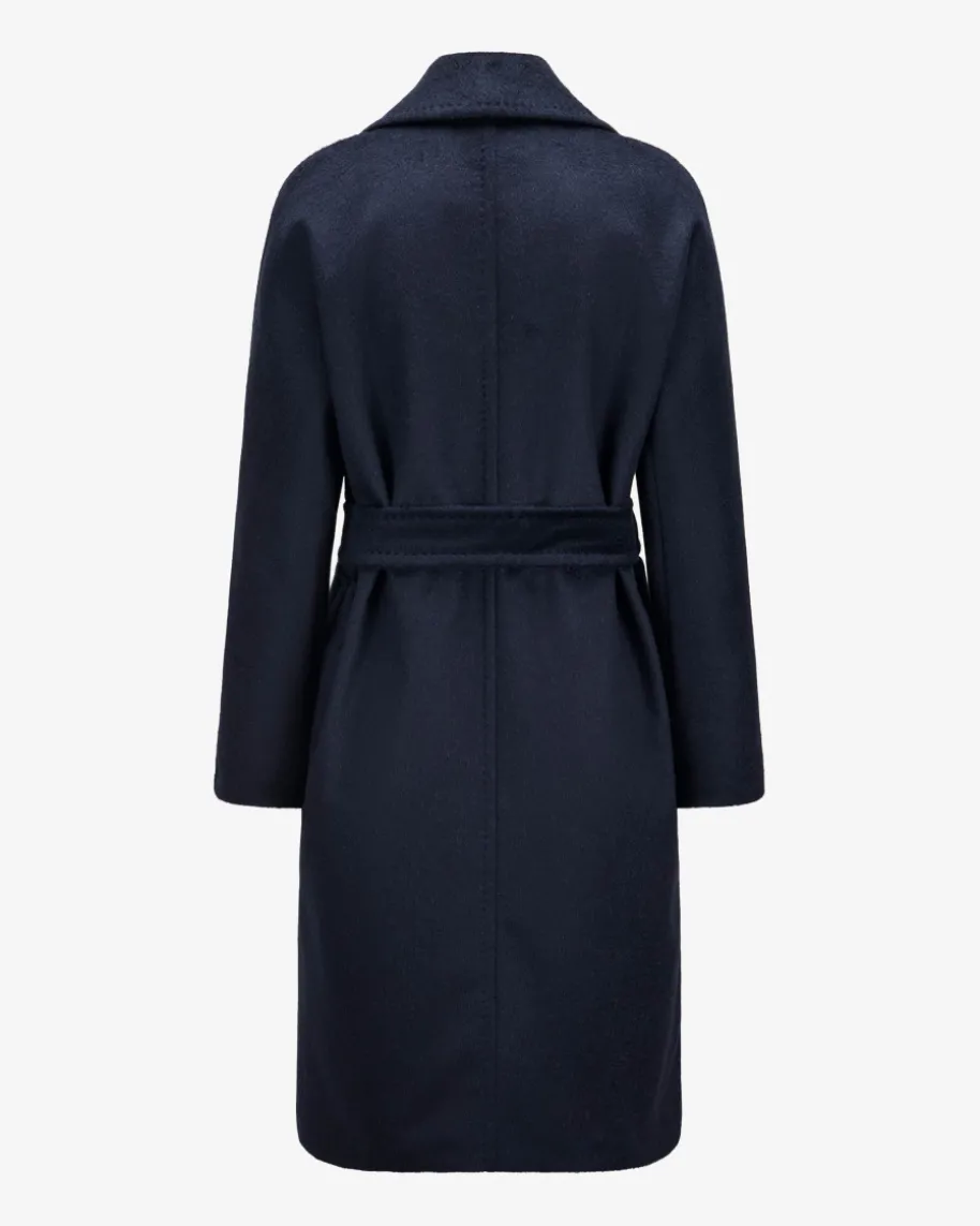 Panteon Cashmere-Wollmantel für Damen von Max Mara Studio in Navy. Weiblich,modern, tragbar – Max Maras femininere Linie. Auch dieses Modell in hochwertigemCashmere-Woll-Mix, überzeugt mit angenehmen Tragemomenten, während das Brushed-Cashmere-Design und der Drachenkeil-Einsatz einen besonderen Charakter verleiht.