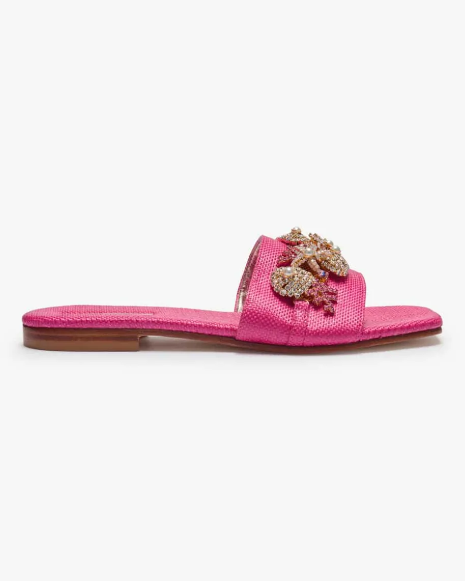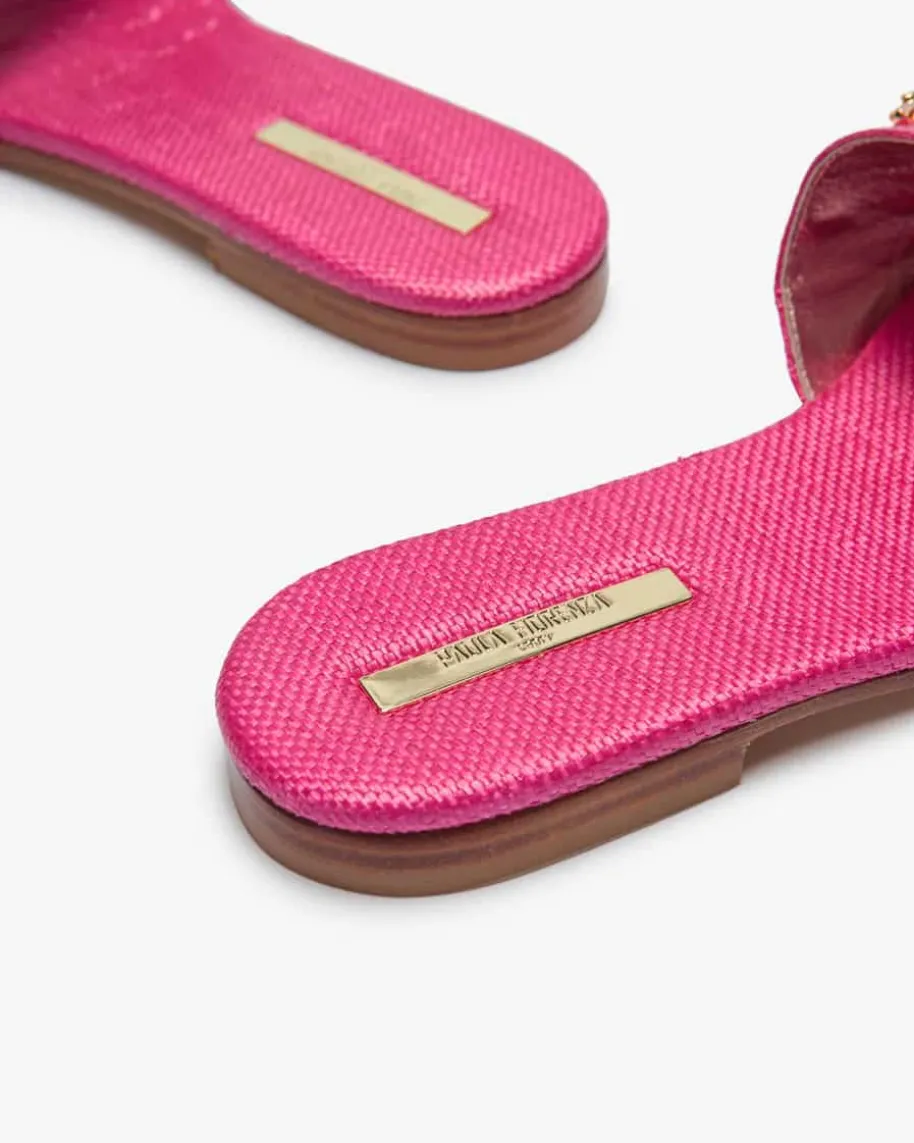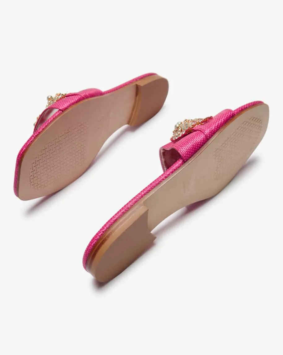 Pantoletten für Damen von Paola Fiorenza in Pink. Das Modell in feiner Flecht-Aufmachung avanciert zu ihrem neuen Sommerliebling, der sich dank desauffälligen Schmuckstein-Besatz sowohl elegant als auch casual stylen lässt undjedes Outfit zu einem optischen Highlight macht.