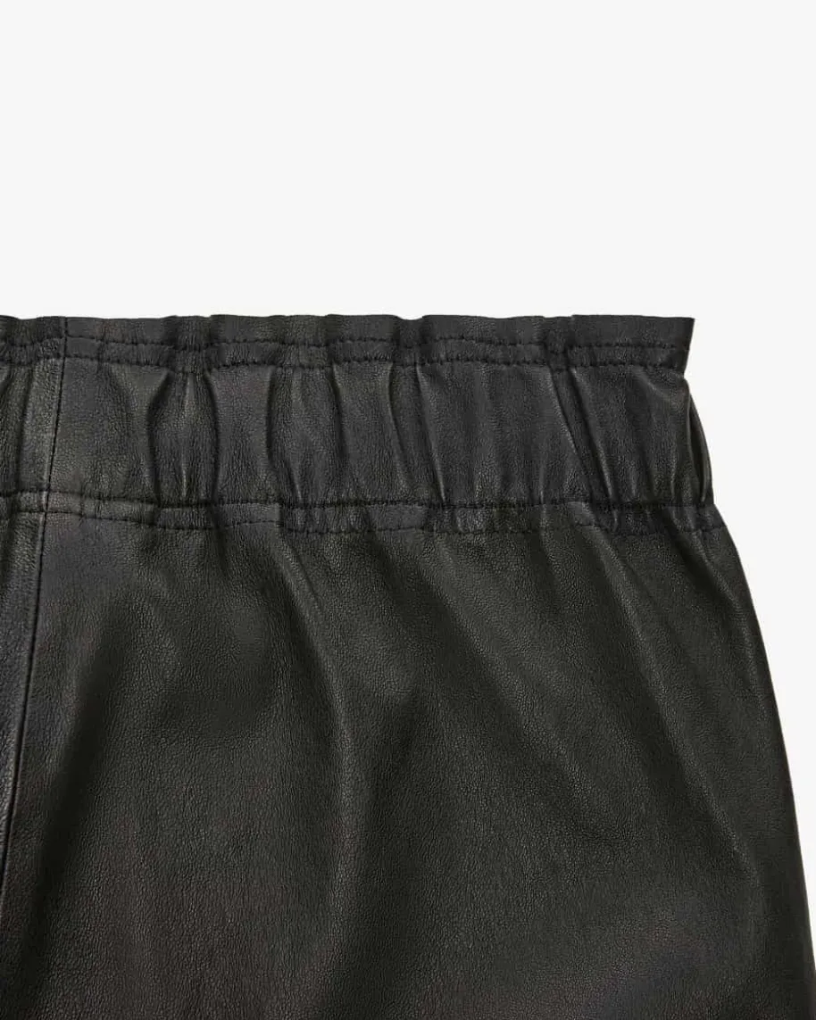Philine Napp Lederhose für Damen von Iris von Arnim in Schwarz. Das Modell inhochwertigem Lammleder überzeugt mit angenehmen Tragemomenten dank derelastischen Eigenschaften, während die klassischen Details und die mattglänzende Optik das Gesamtbild harmonisch abrunden.