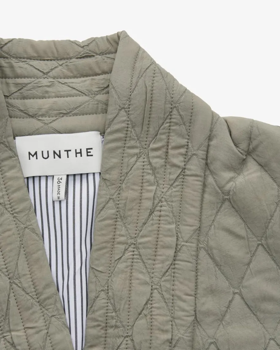 Pifita Jacke für Damen von Munthe in Oliv. Das Modell begeistert mit gesteppterAufmachung, die zusammen mit der raffinierten Knitter-Optik für einen modischenLook sorgt. Das integrierte Taillenband kreiert zudem eine feminine Silhouette.