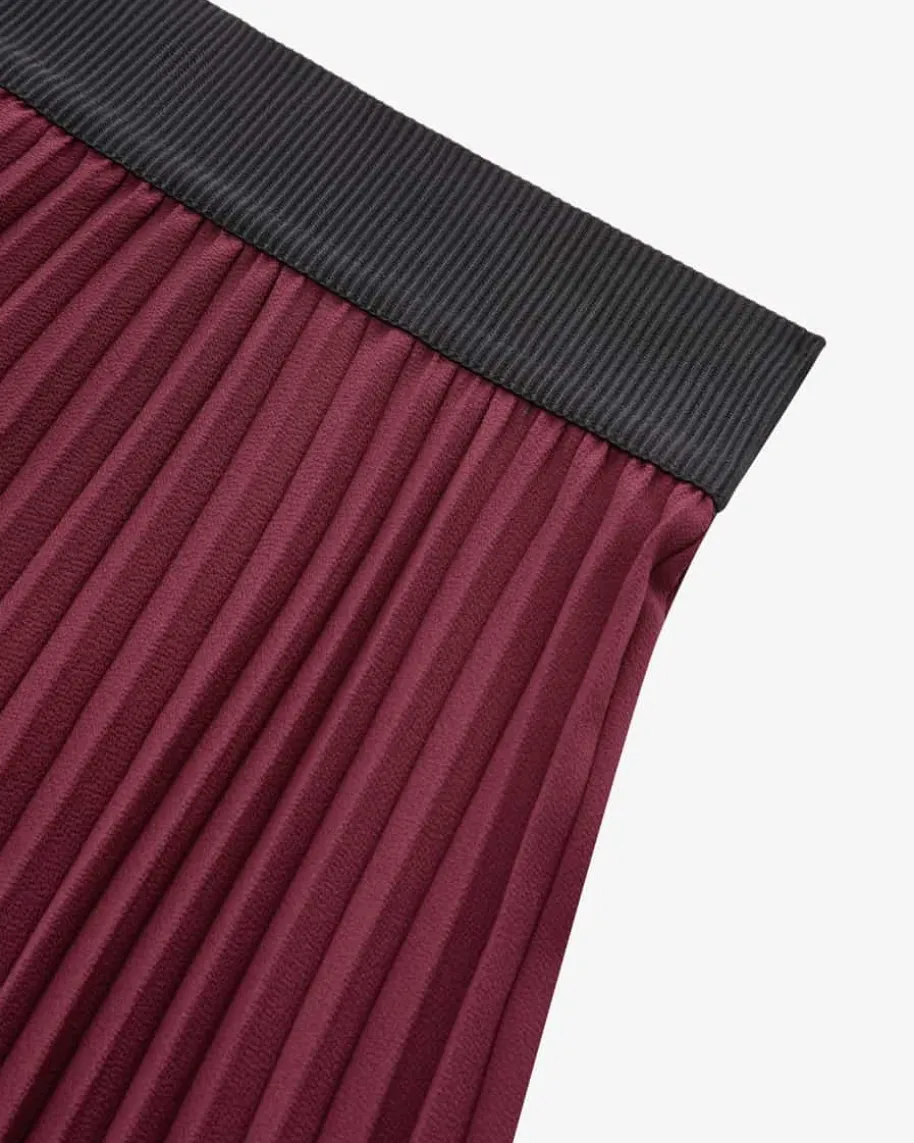 Plisseerock für Damen von Shirtaporter in Bordeaux. Das Modell besticht dankmatter Crèpe-Qualität sowie dem ausgestellten Schnitt in femininer Aufmachung,während die stilvolle Plissee-Optik das Gesamtbild harmonisch vollendet.Zugleich sorgt der elastische Bund für angenehme Tragemomente.