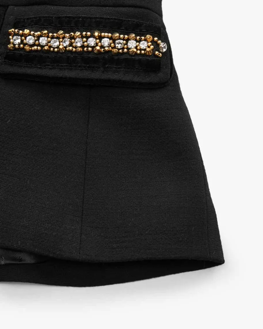 - Strass-Stein-Besatz an Taschen und Stehkragen