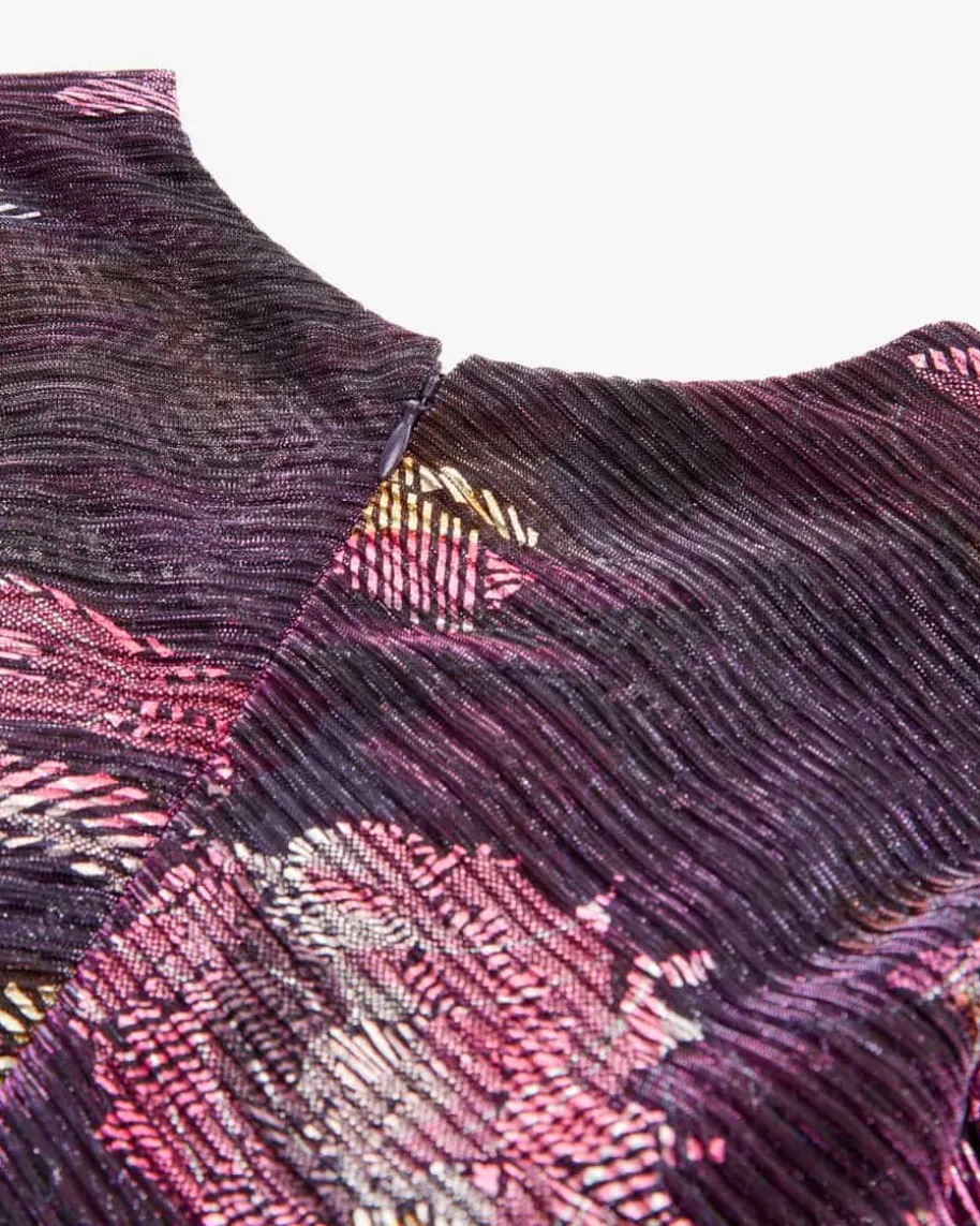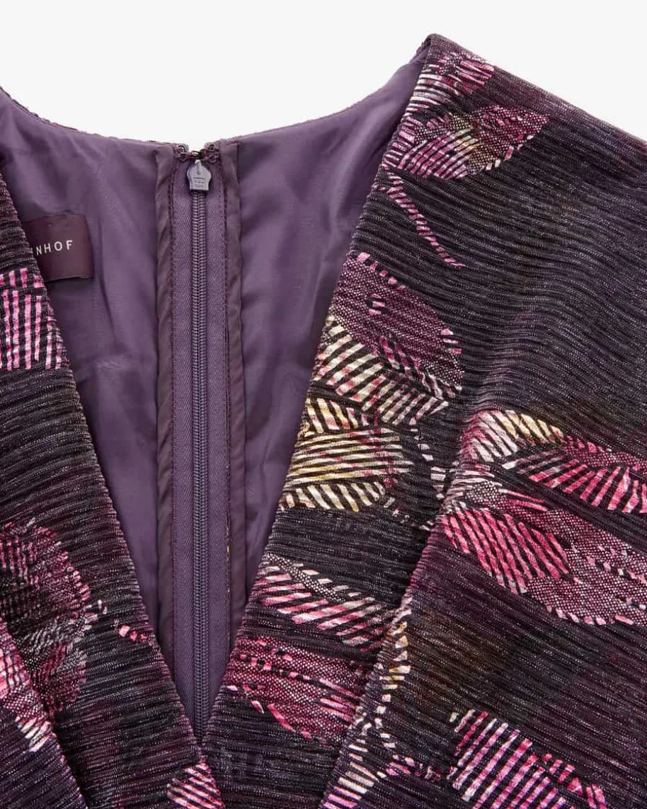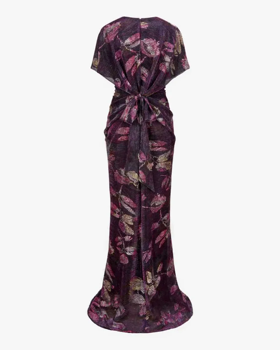 Pomme1 Abendkleid für Damen von Talbot Runhof in Violett, Pink und Gold. Indiesem Modell verschmelzen Elemente des Kaftans mit Eleganz eines klassischenAbendkleides und schaffen einen atemberaubenden, couturigen Look der bei jedemAuftritt für Aufsehen sorgt.
