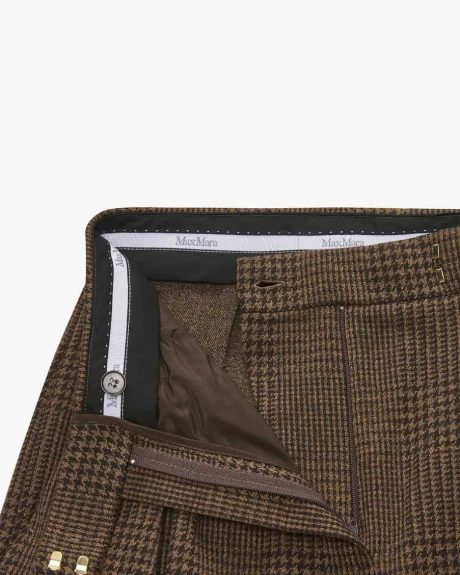 Ponza Hose für Damen von Max Mara in Hellbraun und Dunkelbraun. Das Modell sorgtdank gestricktem Baumwoll-Woll-Mix für angenehme Tragemomente, während das weiteBein in Kombination mit dem hohen Bund sowie das klassische Hahnentritt-Mustereinen femininen und zugleich modernen Begleiter kreiert.