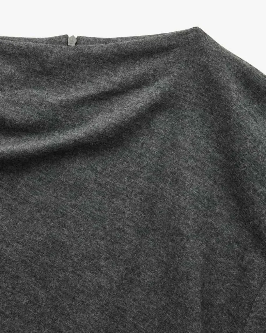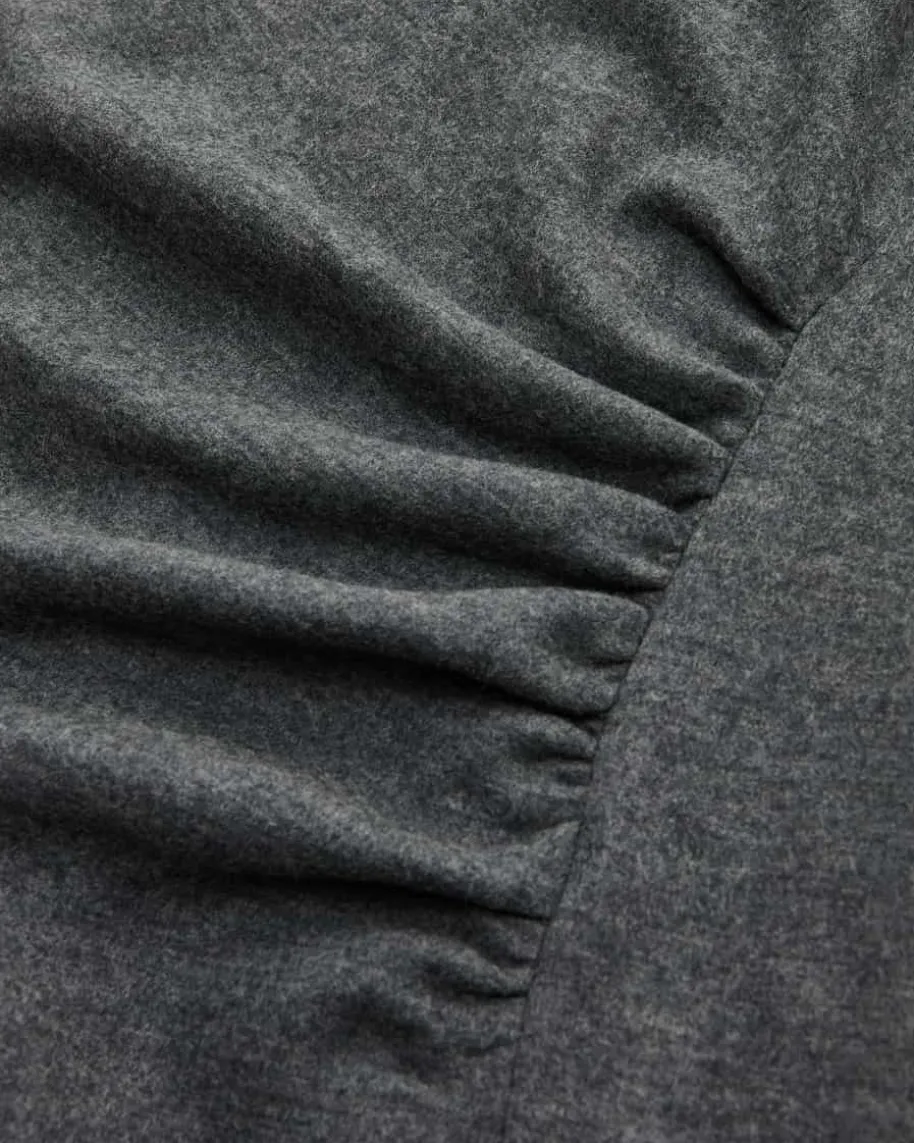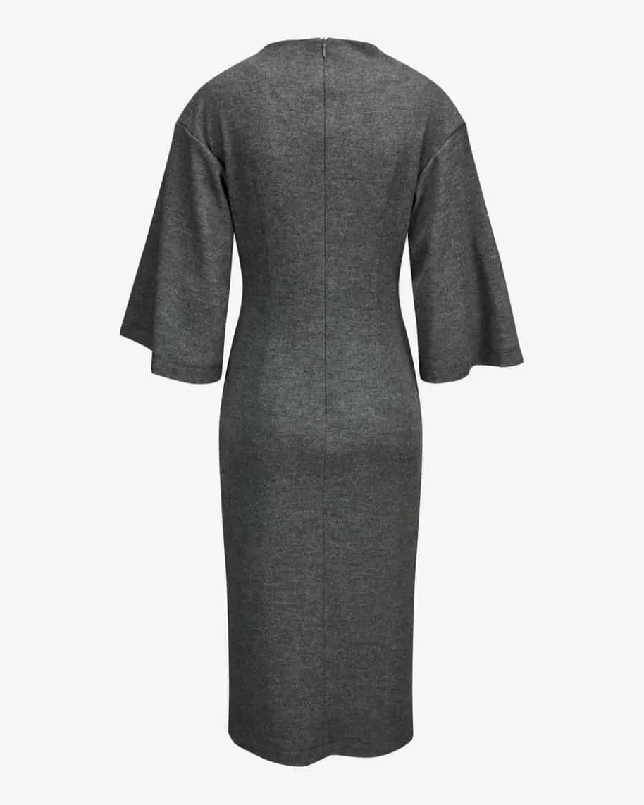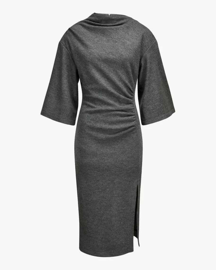 Poppie Kleid für Damen von SLY010 in Anthrazit. Das Modell präsentiert sich infemininer Aufmachung mit schmeichelnden Raffungen auf Taillenhöhe, während derStehkragen und die ausgestellten Ärmel eine Casual Note verleihen.