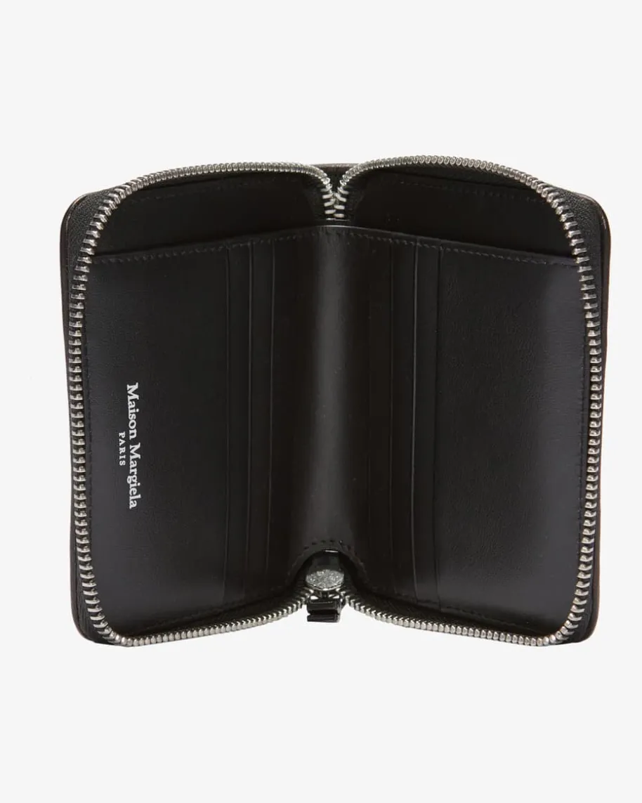 Portmonnaie von Maison Margiela in Schwarz. Das Modell präsentiert sich dank derextravaganten Leder-Aufmachung als optisches sowie haptisches Highlight, währenddiverse Kartenfächer einen funktionalen Favoriten kreieren.