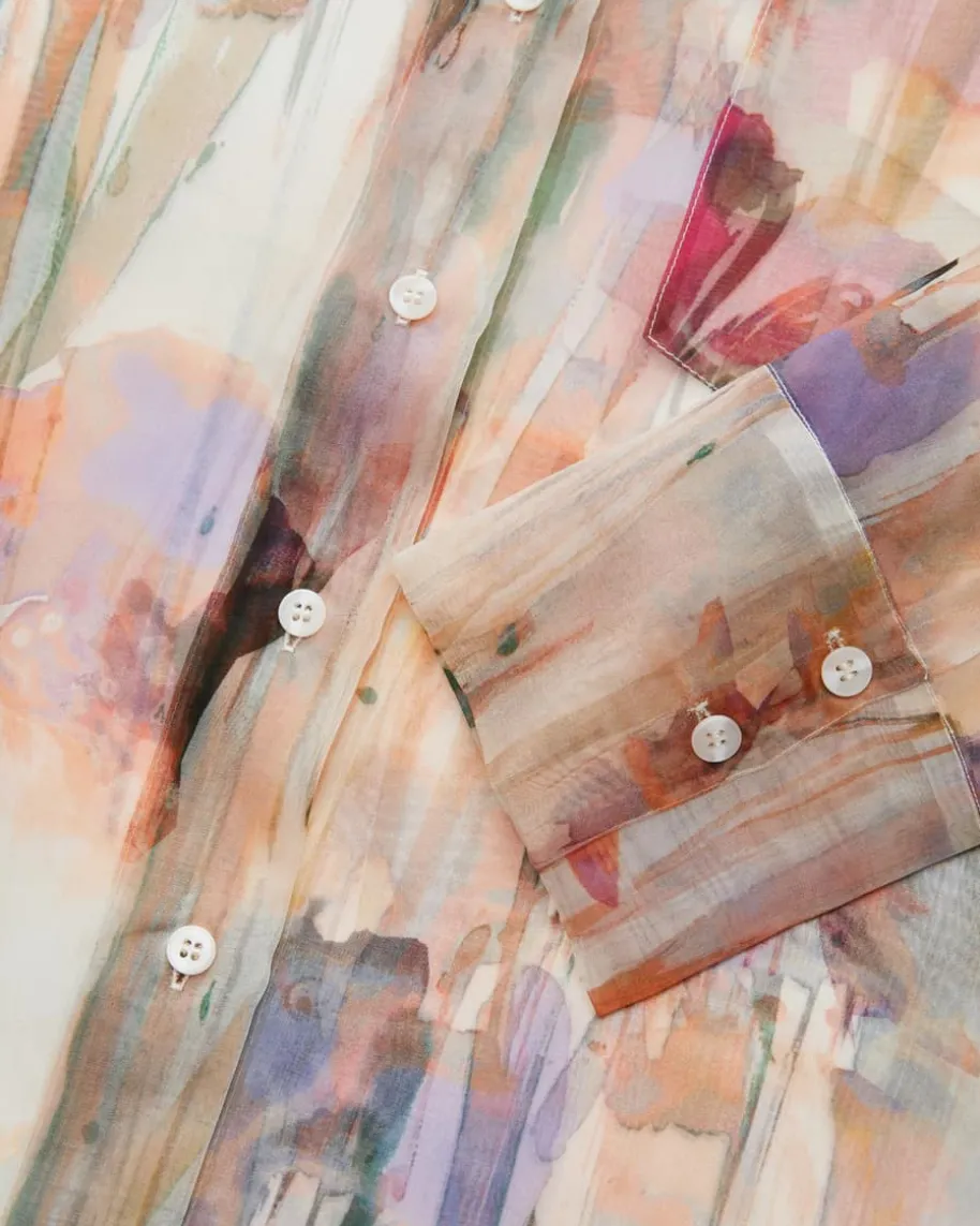 Priam Hemdbluse für Damen von Munthe in Bunt. Das transparente Modell inhochwertiger Seiden-Qualität überzeugt in weiter Schnittform, während dasfarbenfrohe Dessin einen modernen Begleiter für besondere Styles schafft.